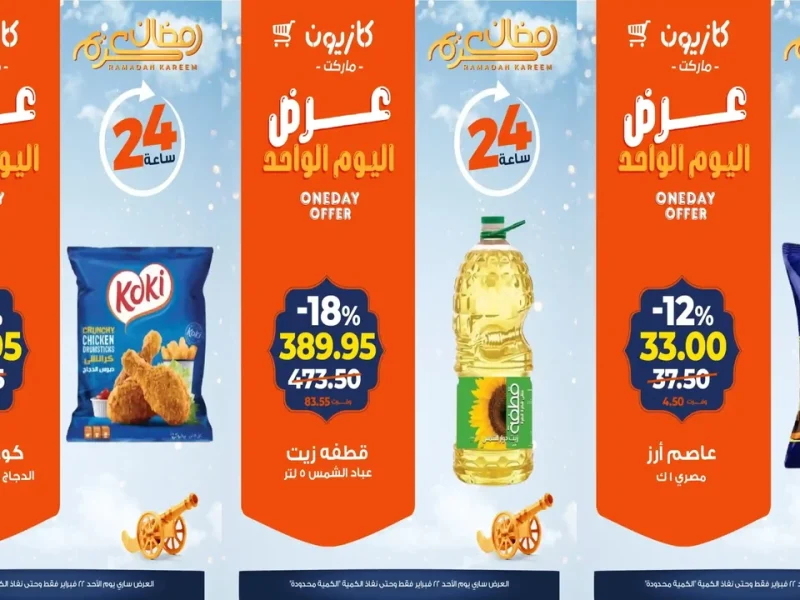 عروض نت تقدم لكم عروض كازيون ماركت الجديدة Kazyon – جنب بيتك – عروض كازيون اليوم الجديدة من الاحد 22 فبراير 2026 افضل عروض اليوم اوحتى نفاذ الكمية بجميع الفروع.