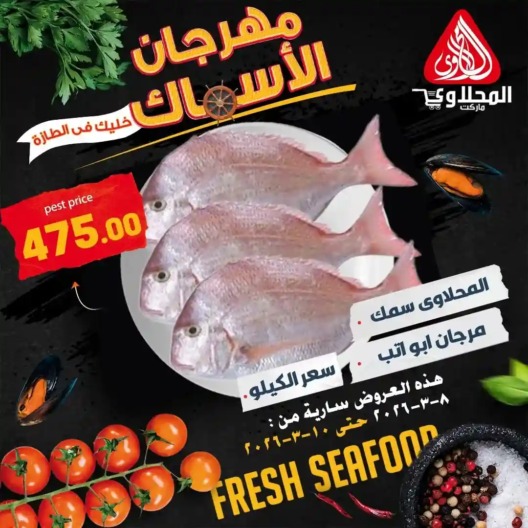 عروض نت تقدم لكم عروض المحلاوى الجديدة El-Mahlawy – اليوم 8 مارس حتى 10 مارس 2026 مهرجان الاسماك اوحتى نفاذ الكمية بجميع الفروع.