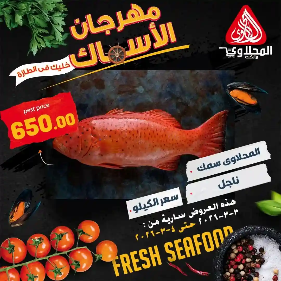 عروض نت تقدم لكم عروض المحلاوى الجديدة El-Mahlawy – اليوم 3 و 4 مارس 2026 مهرجان الاسماك اوحتى نفاذ الكمية بجميع الفروع.