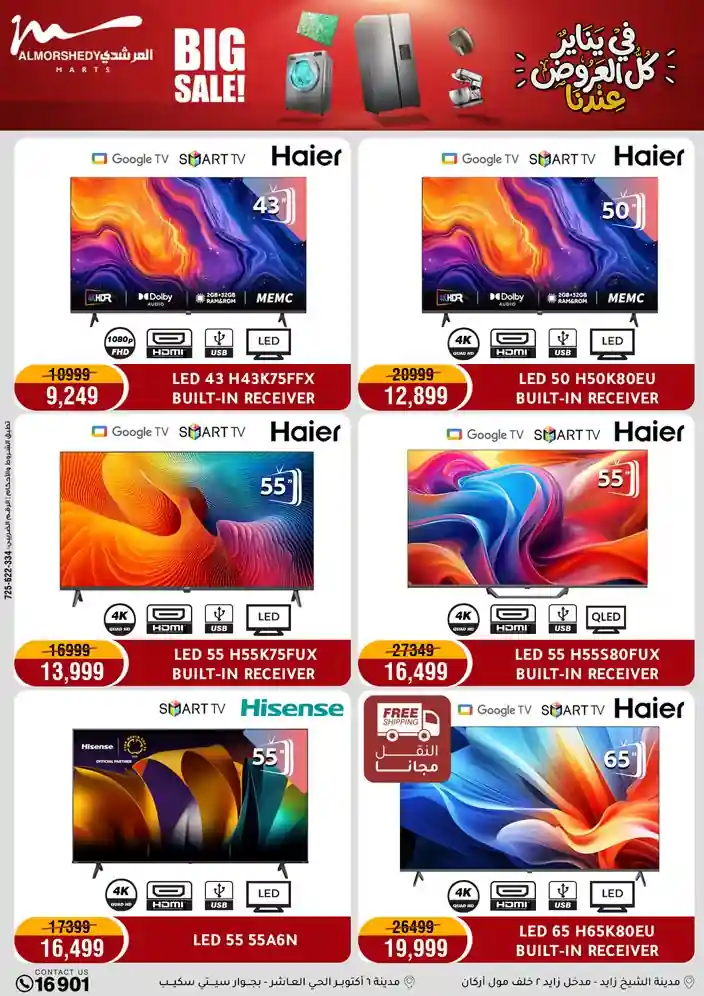 وكمان النقل مجاني للقاهرة والجيزة والقليوبية على قسم الأجهزة الكهربائية والموبيليا والمراتب ( تطبق شروط المكان )