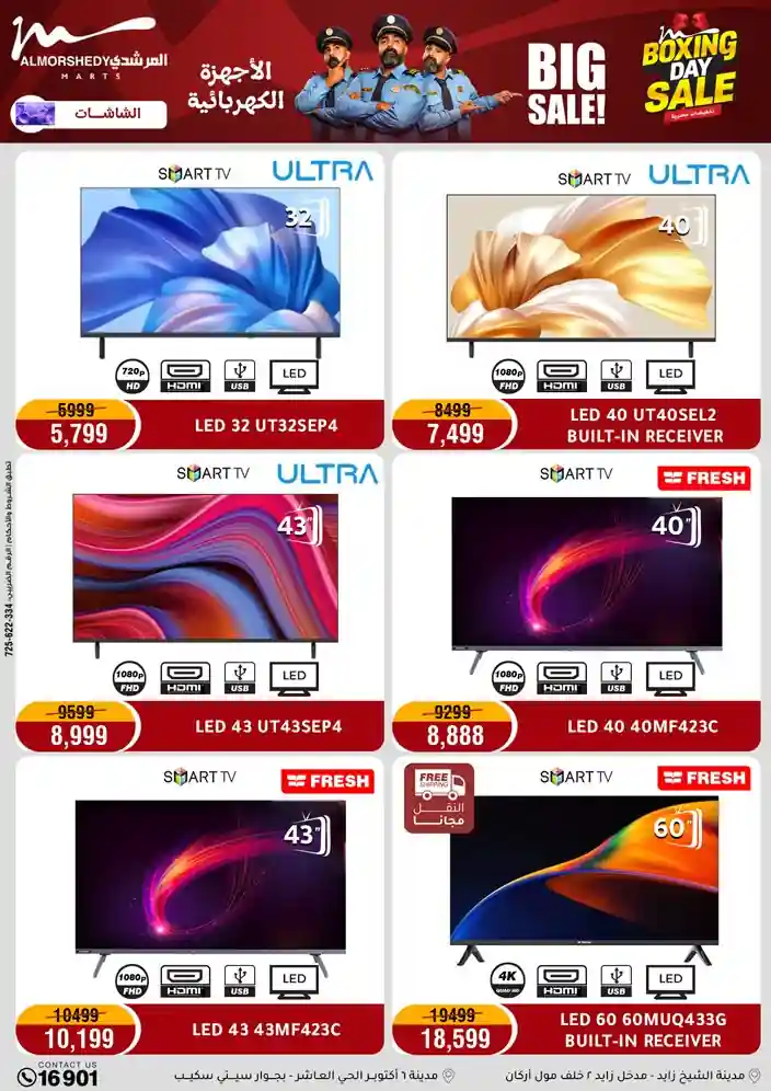 وكمان النقل مجاني للقاهرة والجيزة والقليوبية على قسم الأجهزة الكهربائية والموبيليا والمراتب ( تطبق شروط المكان )