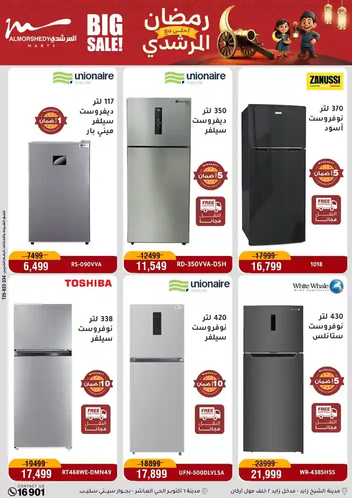 وكمان النقل مجاني للقاهرة والجيزة والقليوبية على قسم الأجهزة الكهربائية والموبيليا والمراتب ( تطبق شروط المكان )