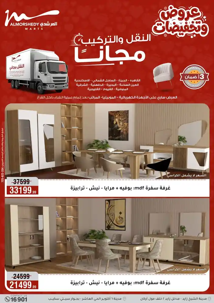 وكمان النقل مجاني للقاهرة والجيزة والقليوبية على قسم الأجهزة الكهربائية والموبيليا والمراتب ( تطبق شروط المكان )