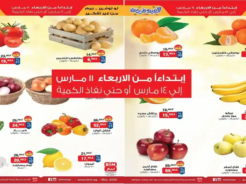 عروض بيم اليوم 11 مارس حتى 14 مارس 2026 بجميع فروع بيم ماركت