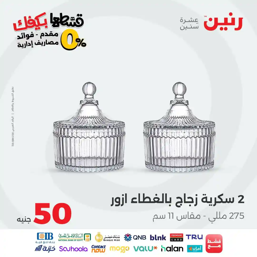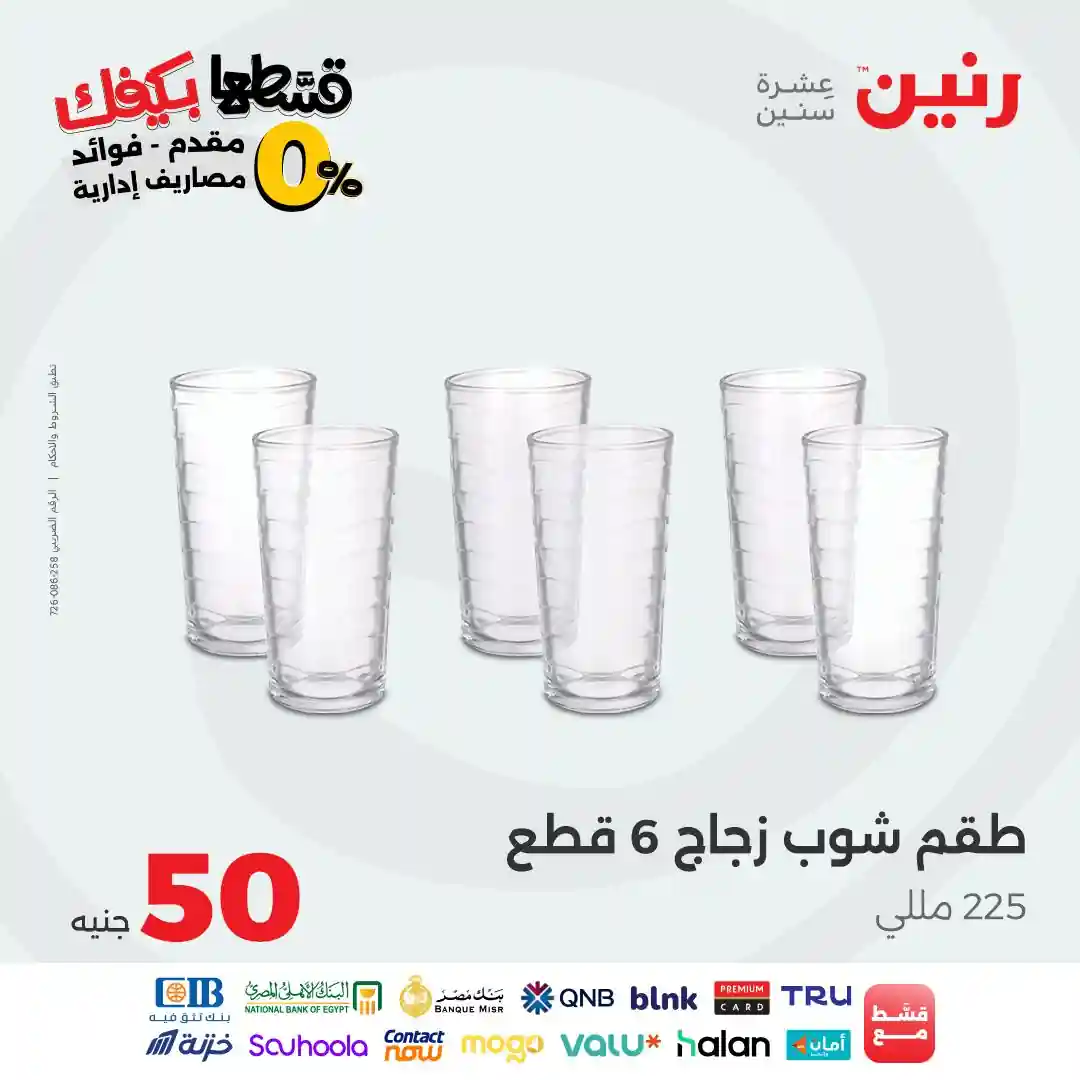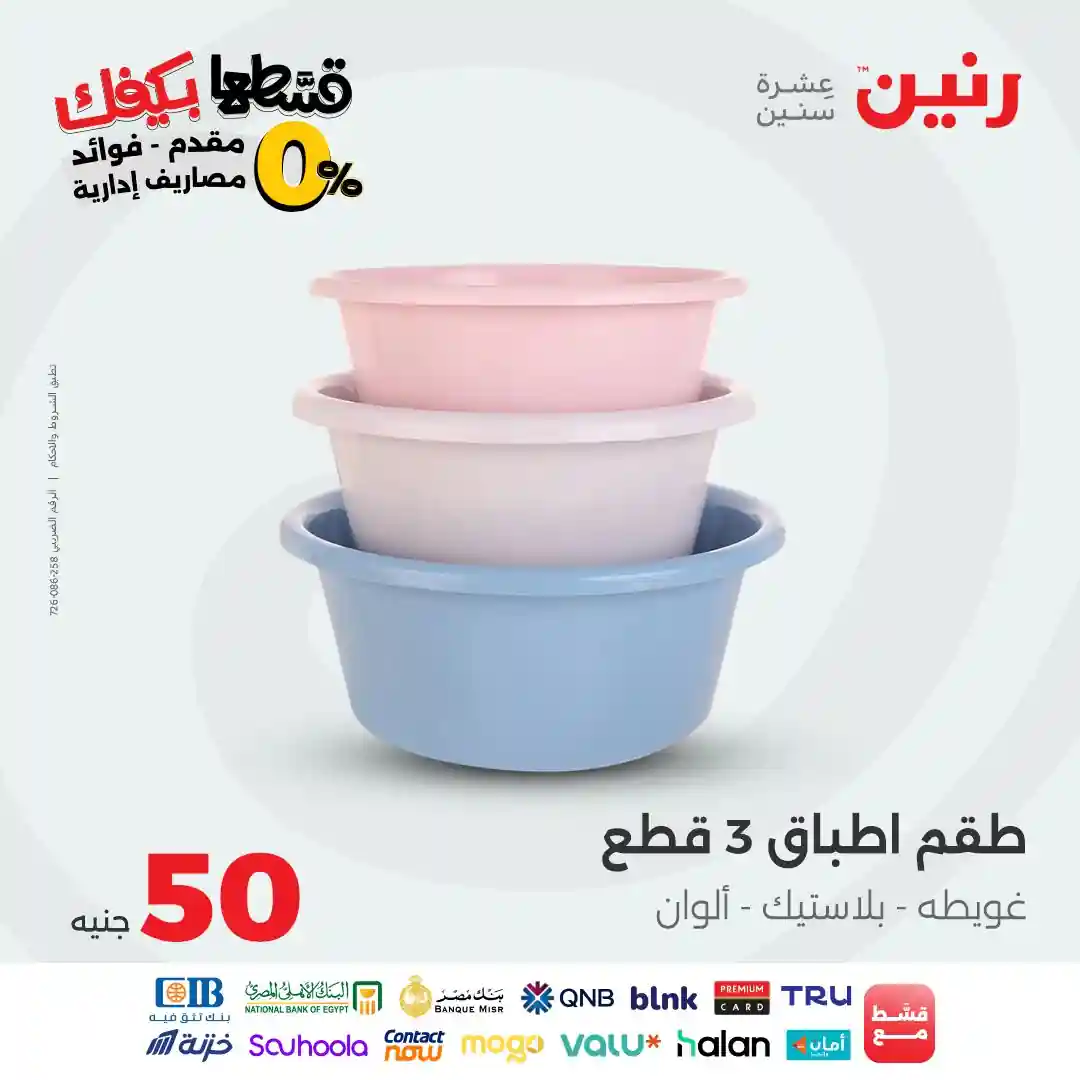 تقدم شركة رنين للادوات المنزلية عروض يومية لجميع ايام الاسبوع على الادوات المنزلية والاجهزة الكهربائية كما تقدم مهرجان عروض ال 15 جنيه الاحد من كل اسبوع ومهرجان عروض ال 99 جنيه الثلاثاء من كل اسبوع ومهرجان عروض ال 10 جنيه الاربعاء من كل اسبوع ومهرجان عروض ال 20 جنيه الجمعة والسبت من كل اسبوع واليكم احدث عروض رنين