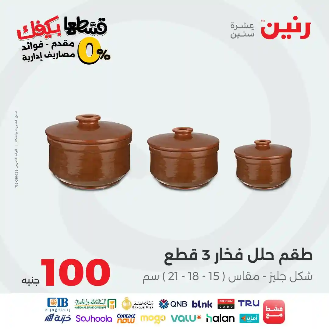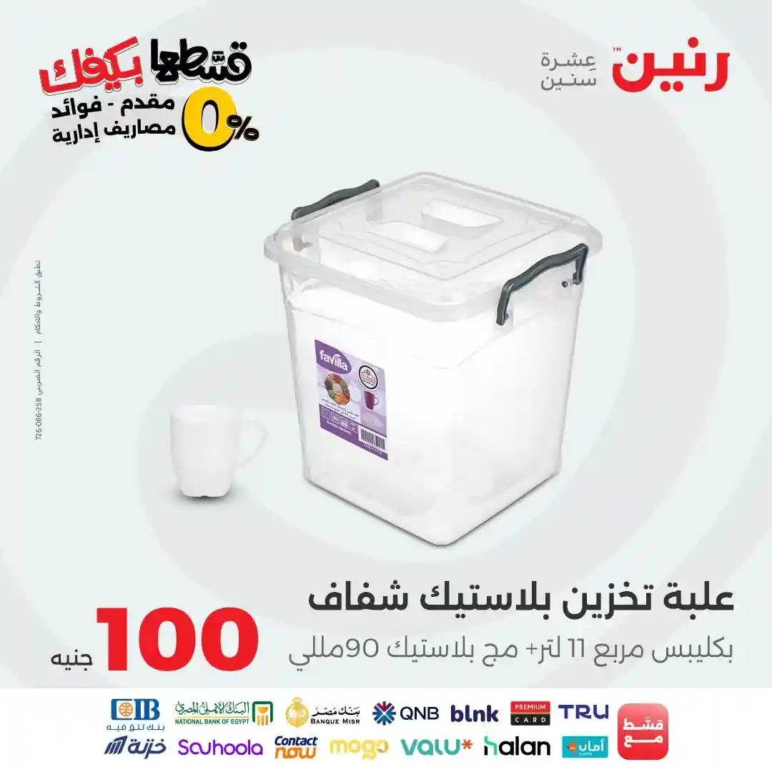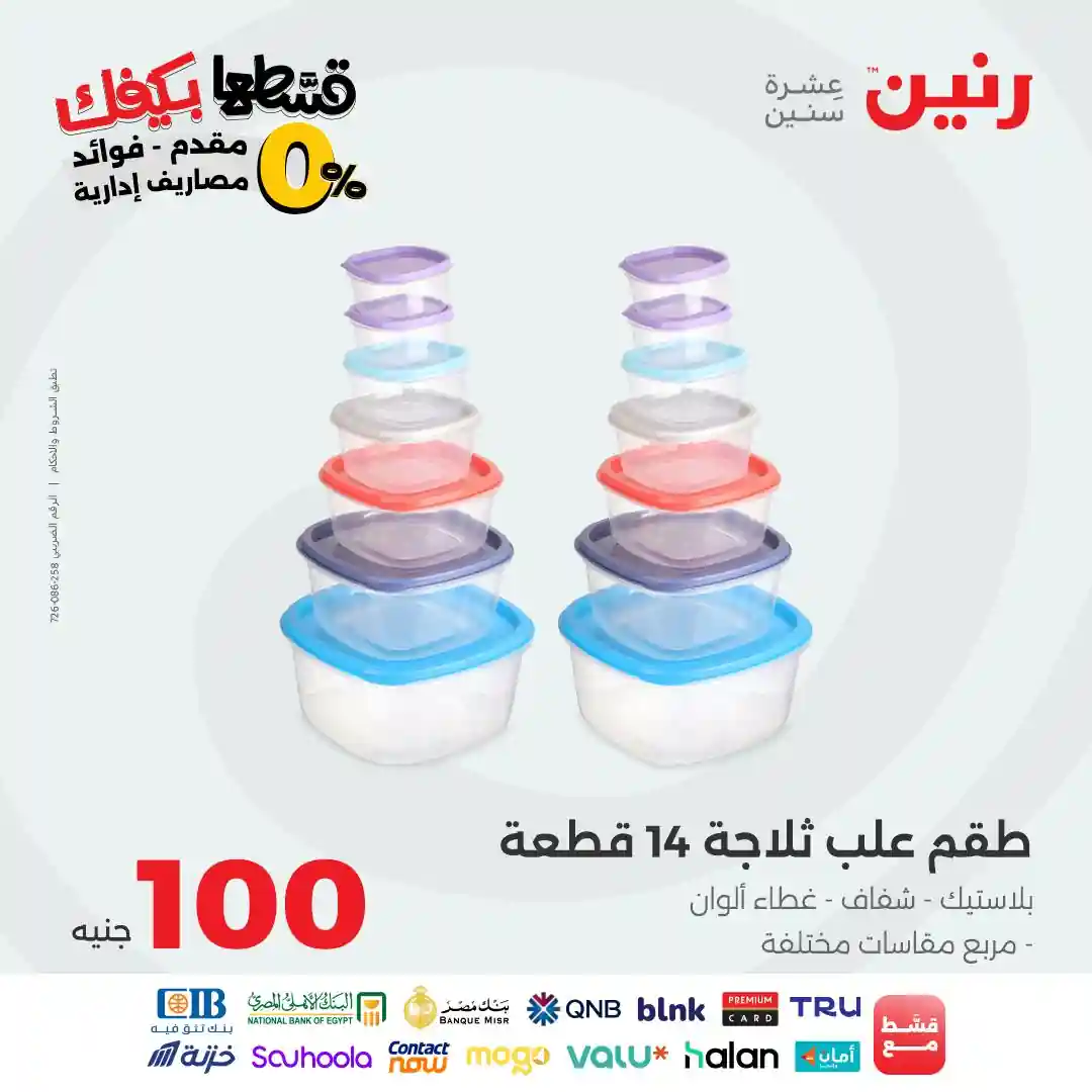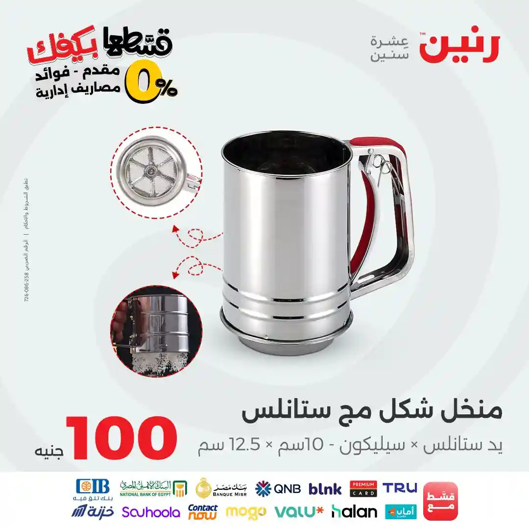 تقدم شركة رنين للادوات المنزلية عروض يومية لجميع ايام الاسبوع على الادوات المنزلية والاجهزة الكهربائية كما تقدم مهرجان عروض ال 15 جنيه الاحد من كل اسبوع ومهرجان عروض ال 99 جنيه الثلاثاء من كل اسبوع ومهرجان عروض ال 10 جنيه الاربعاء من كل اسبوع ومهرجان عروض ال 20 جنيه الجمعة والسبت من كل اسبوع واليكم احدث عروض رنين