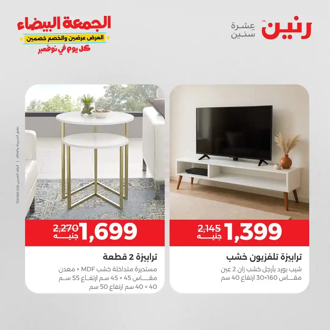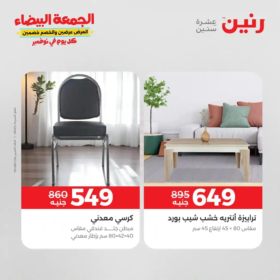 عروض رنين اليوم الجمعة والسبت 31 اكتوبر حتى 1 نوفمبر 2025 المنسوجات والاثاث بجميع فروع رنين
