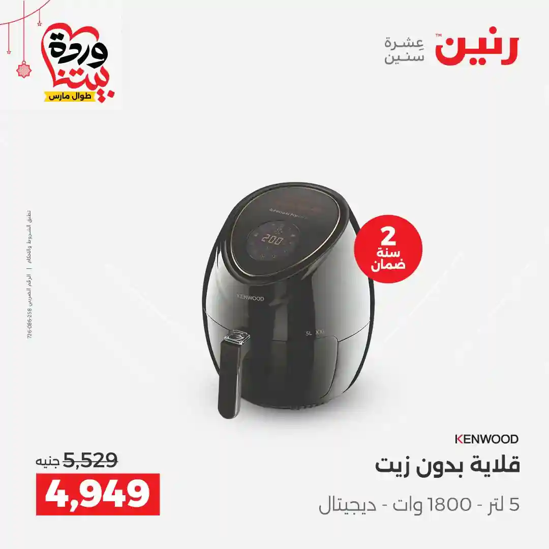عروض رنين اليوم الاحد 22 حتى الاربعاء 25 مارس 2026 للأجهزة الكهربائية بجميع فروع رنين