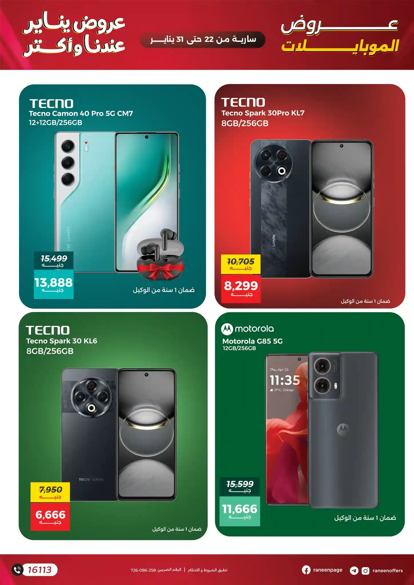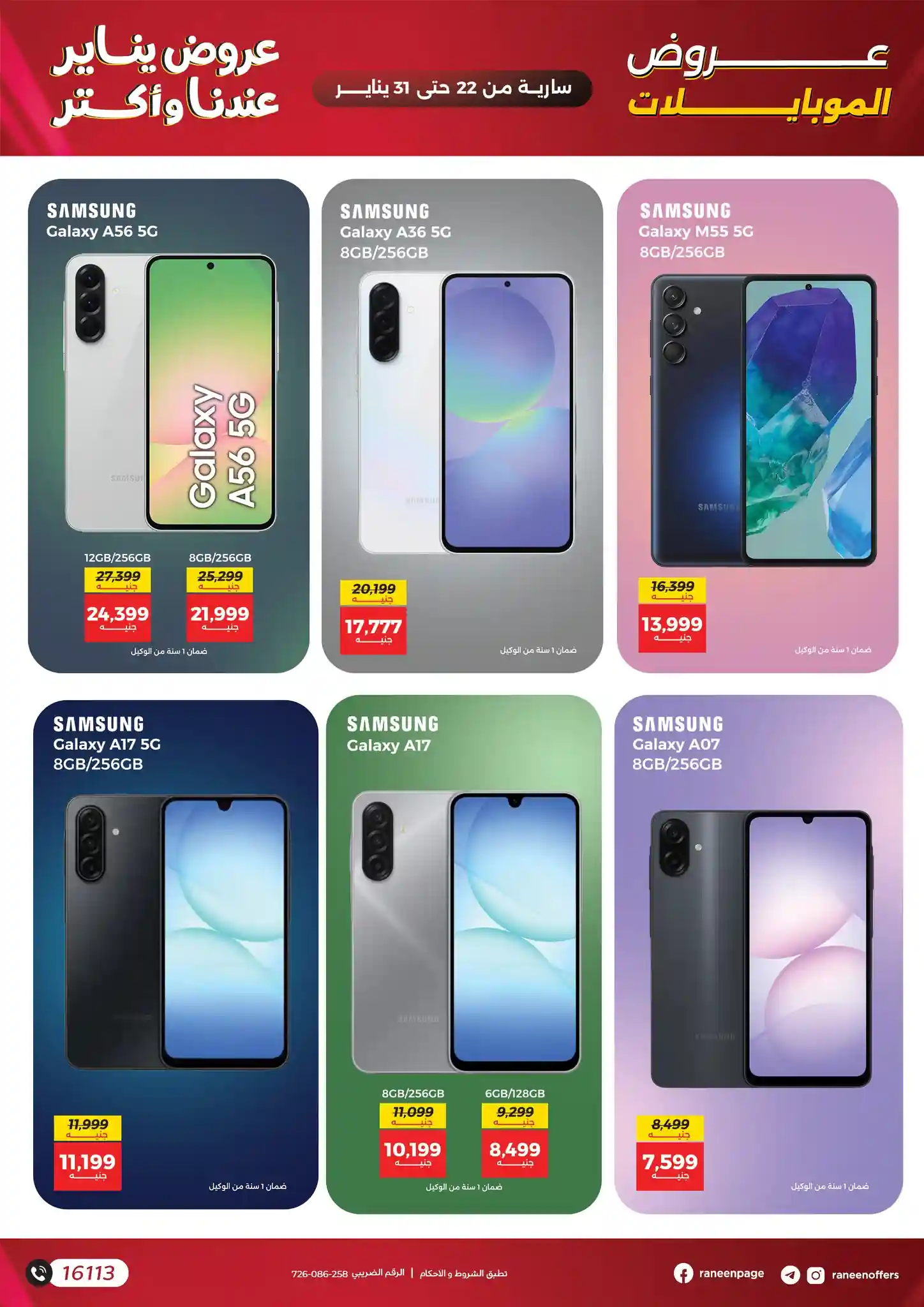 عروض رنين اليوم 22 يناير حتى 31 يناير 2026 الموبايلات والاكسسوارات بجميع فروع رنين