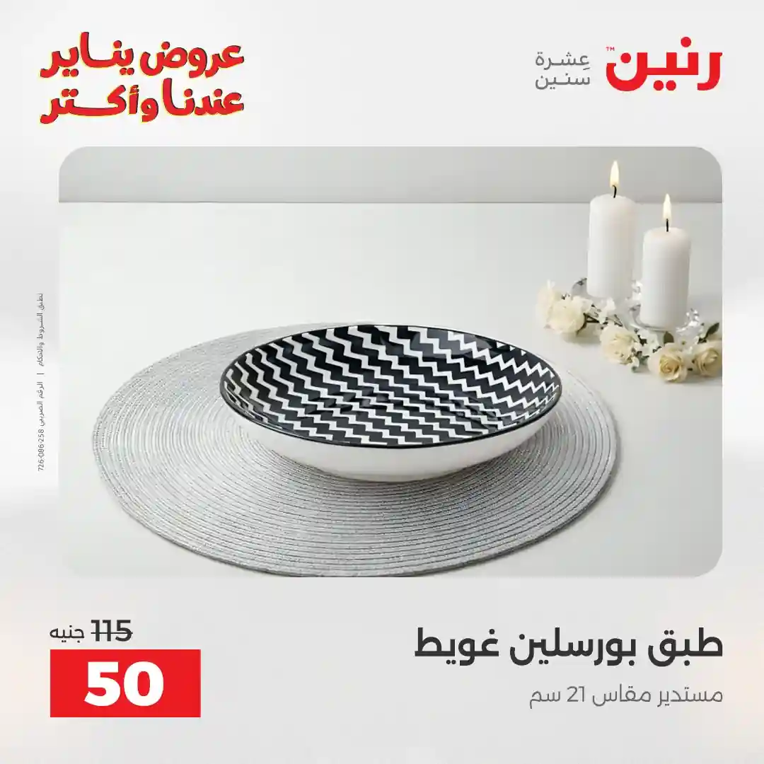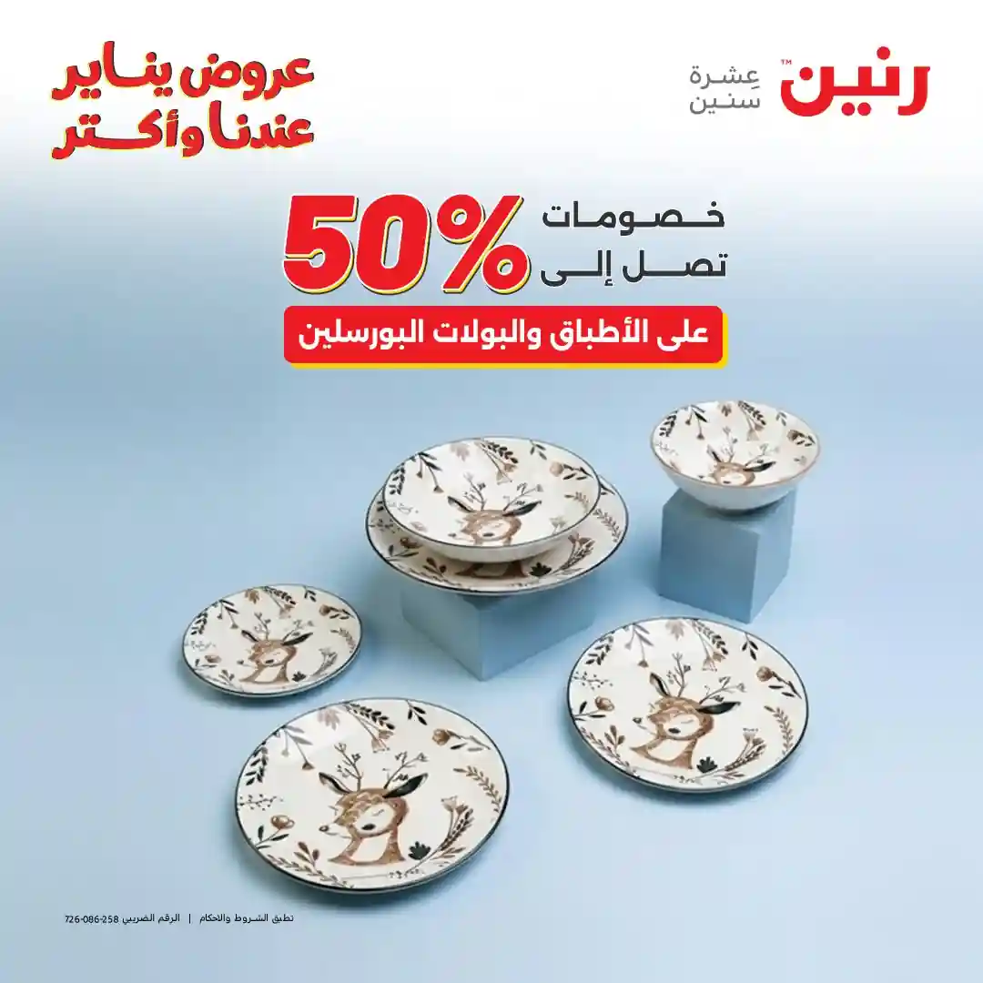 عروض رنين اليوم الاثنين 12 يناير 2026 اطباق البورسلين بجميع فروع رنين