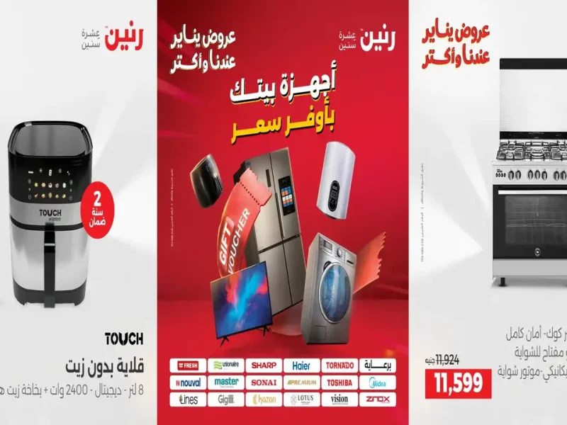 عروض رنين اليوم الخميس للسبت 15 – 16 – 17 يناير 2026 للاجهزة الكهربائية بجميع فروع رنين