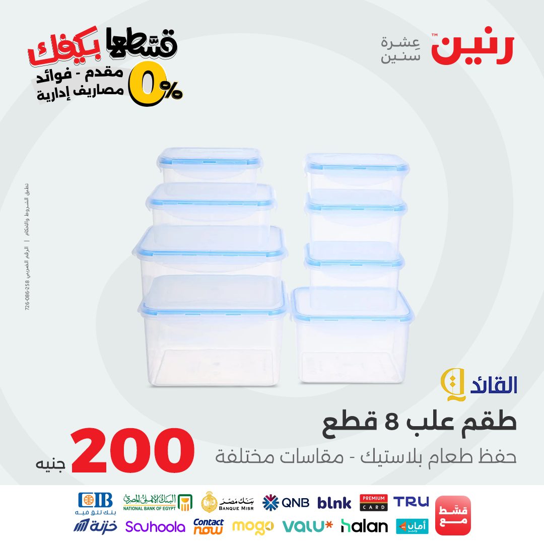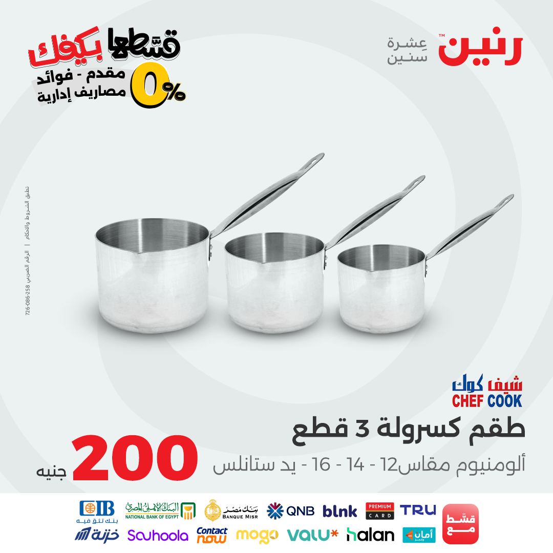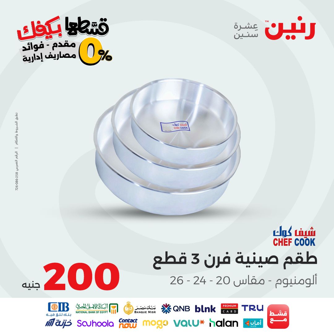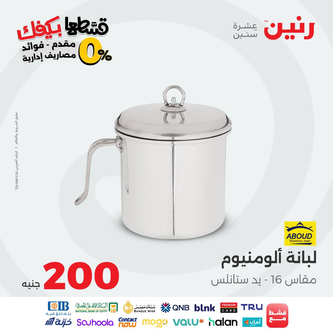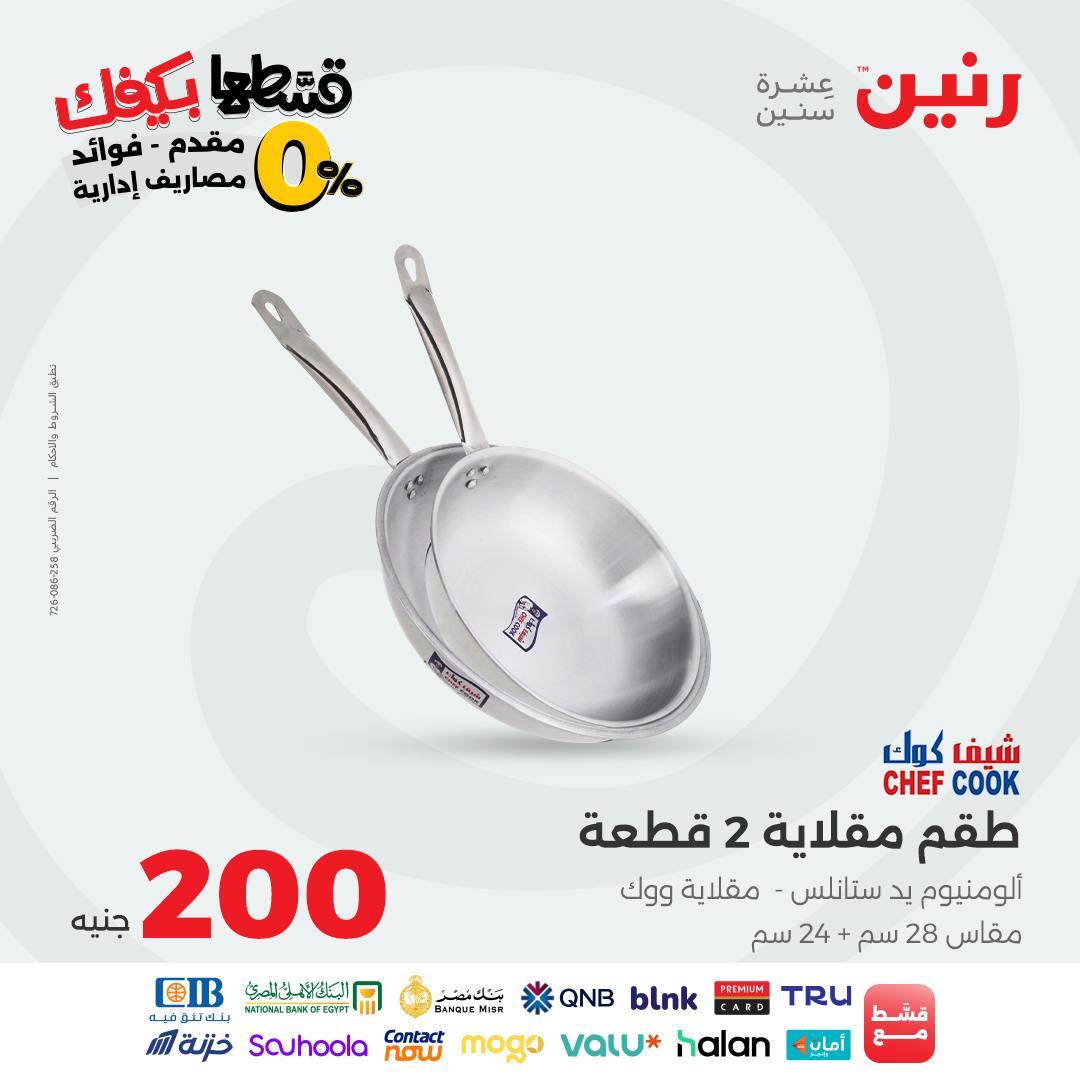 تقدم شركة رنين للادوات المنزلية عروض يومية لجميع ايام الاسبوع على الادوات المنزلية والاجهزة الكهربائية كما تقدم مهرجان عروض ال 15 جنيه الاحد من كل اسبوع ومهرجان عروض ال 99 جنيه الثلاثاء من كل اسبوع ومهرجان عروض ال 10 جنيه الاربعاء من كل اسبوع ومهرجان عروض ال 20 جنيه الجمعة والسبت من كل اسبوع واليكم احدث عروض رنين
