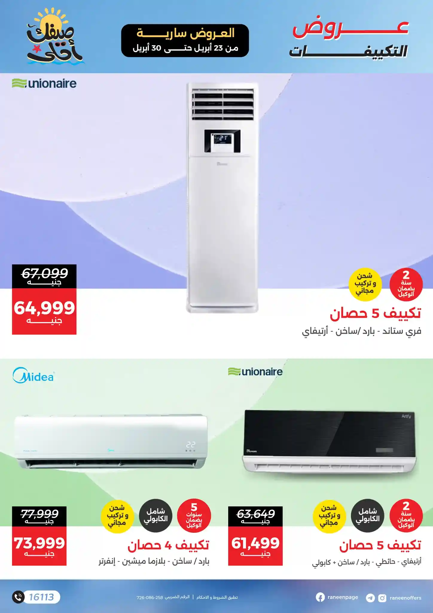 اكتشف عروض رنين اليوم 23 ابريل حتى 30 ابريل 2026 التكييفات الآن واستفد بأفضل الأسعار قبل انتهاء العروض 🔥