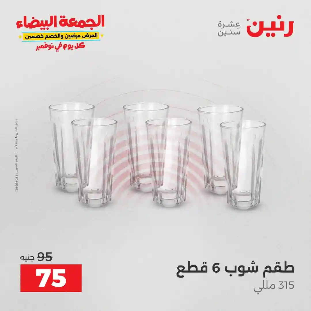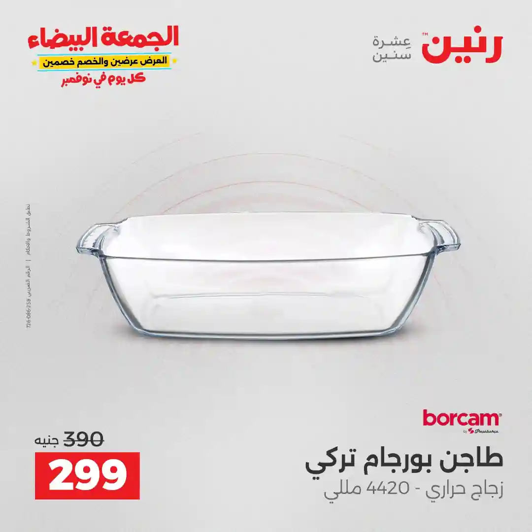 تقدم شركة رنين للادوات المنزلية عروض يومية لجميع ايام الاسبوع على الادوات المنزلية والاجهزة الكهربائية كما تقدم مهرجان عروض ال 15 جنيه الاحد من كل اسبوع ومهرجان عروض ال 99 جنيه الثلاثاء من كل اسبوع ومهرجان عروض ال 10 جنيه الاربعاء من كل اسبوع ومهرجان عروض ال 20 جنيه الجمعة والسبت من كل اسبوع واليكم احدث عروض رنين