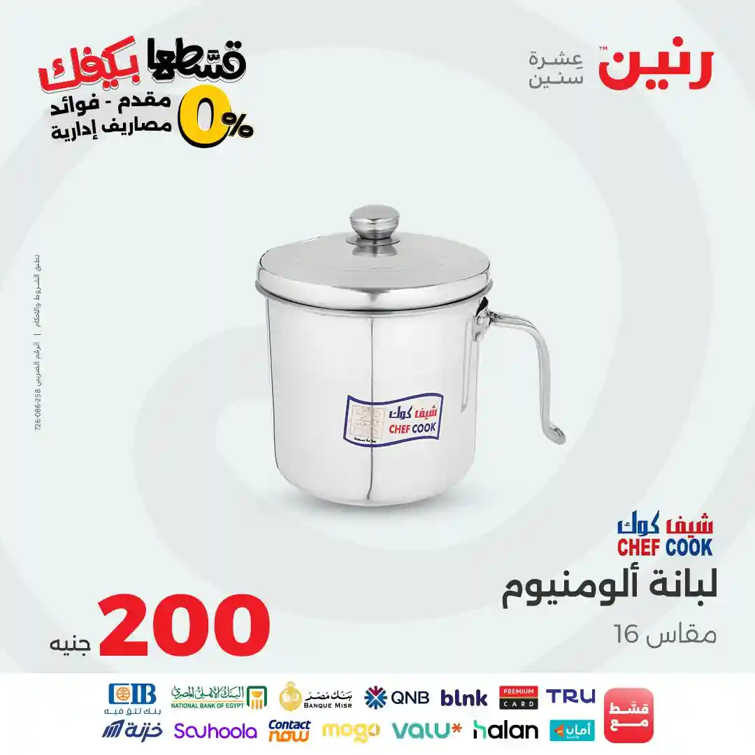 تقدم شركة رنين للادوات المنزلية عروض يومية لجميع ايام الاسبوع على الادوات المنزلية والاجهزة الكهربائية كما تقدم مهرجان عروض ال 15 جنيه الاحد من كل اسبوع ومهرجان عروض ال 99 جنيه الثلاثاء من كل اسبوع ومهرجان عروض ال 10 جنيه الاربعاء من كل اسبوع ومهرجان عروض ال 20 جنيه الجمعة والسبت من كل اسبوع واليكم احدث عروض رنين