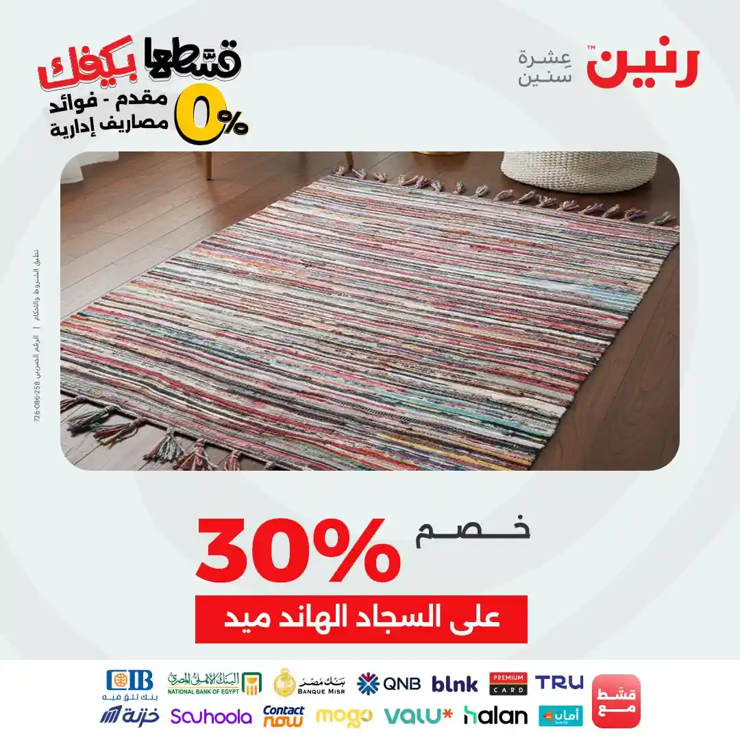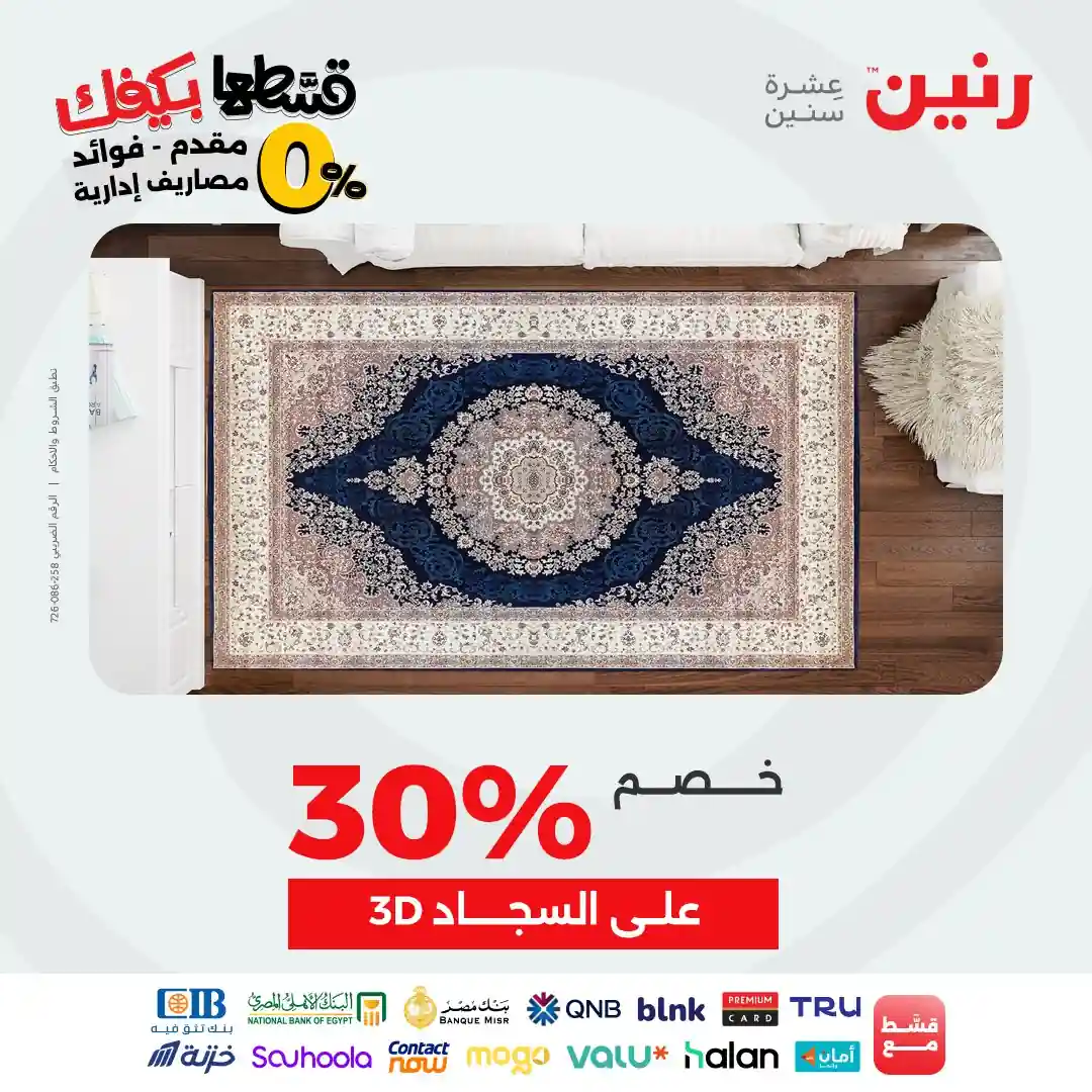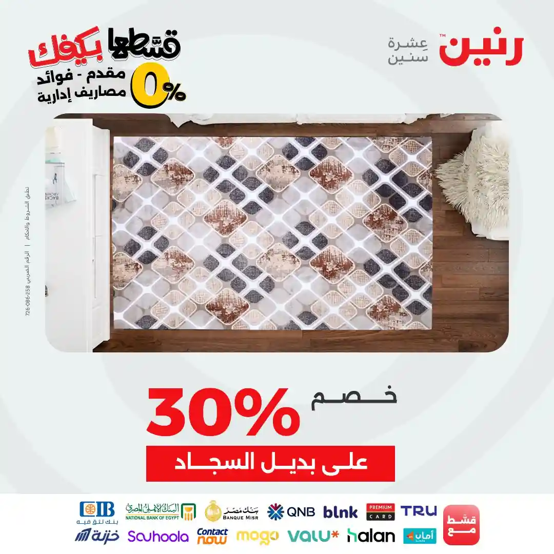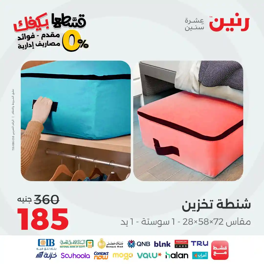 تقدم شركة رنين للادوات المنزلية عروض يومية لجميع ايام الاسبوع على الادوات المنزلية والاجهزة الكهربائية كما تقدم مهرجان عروض ال 15 جنيه الاحد من كل اسبوع ومهرجان عروض ال 99 جنيه الثلاثاء من كل اسبوع ومهرجان عروض ال 10 جنيه الاربعاء من كل اسبوع ومهرجان عروض ال 20 جنيه الجمعة والسبت من كل اسبوع واليكم احدث عروض رنين