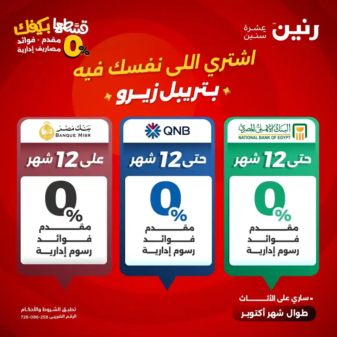 عروض رنين اليوم الاحد والاثنين 26 و 27 اكتوبر 2025 خصومات المنسوجات والاثاث بجميع الفروع