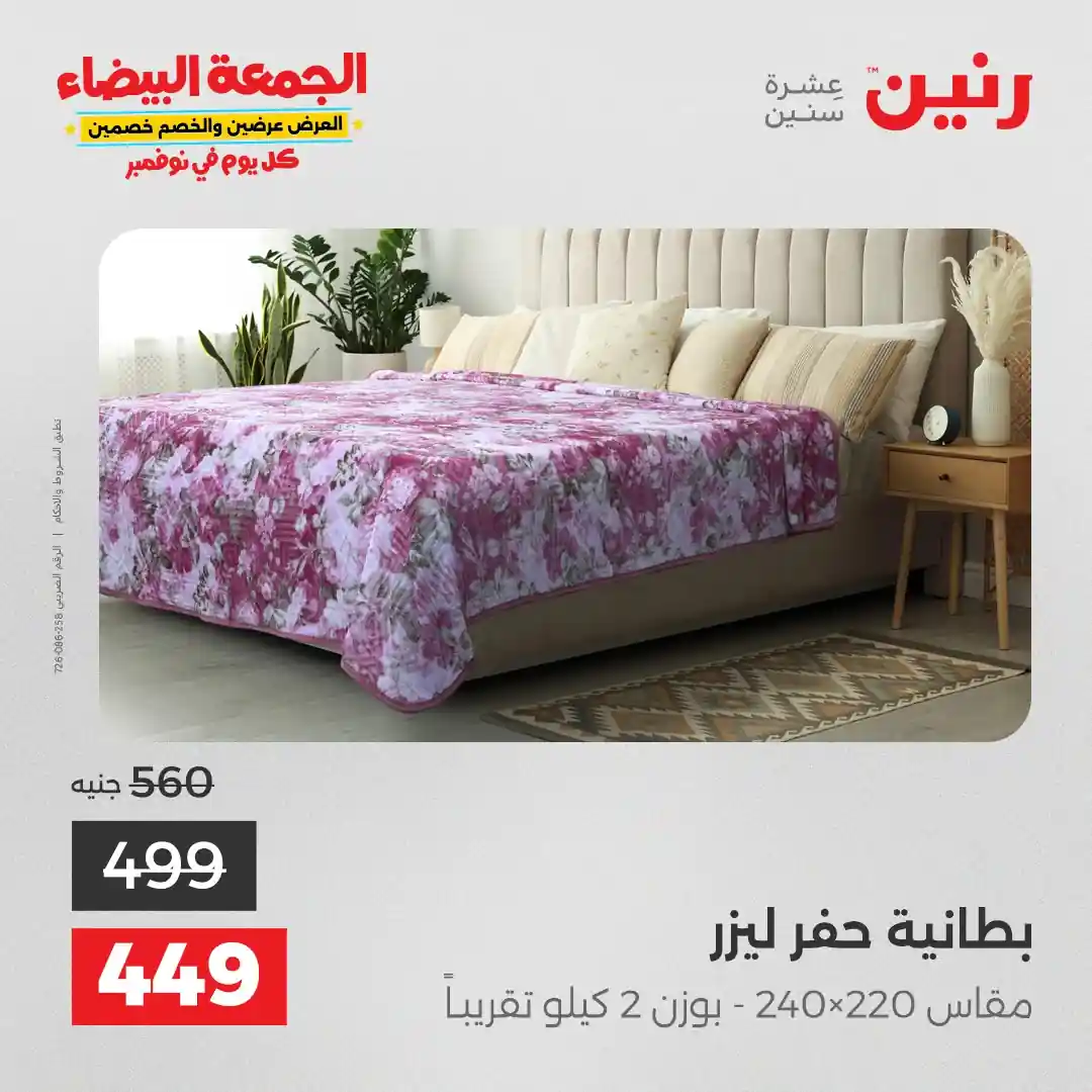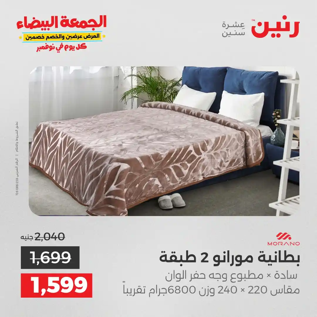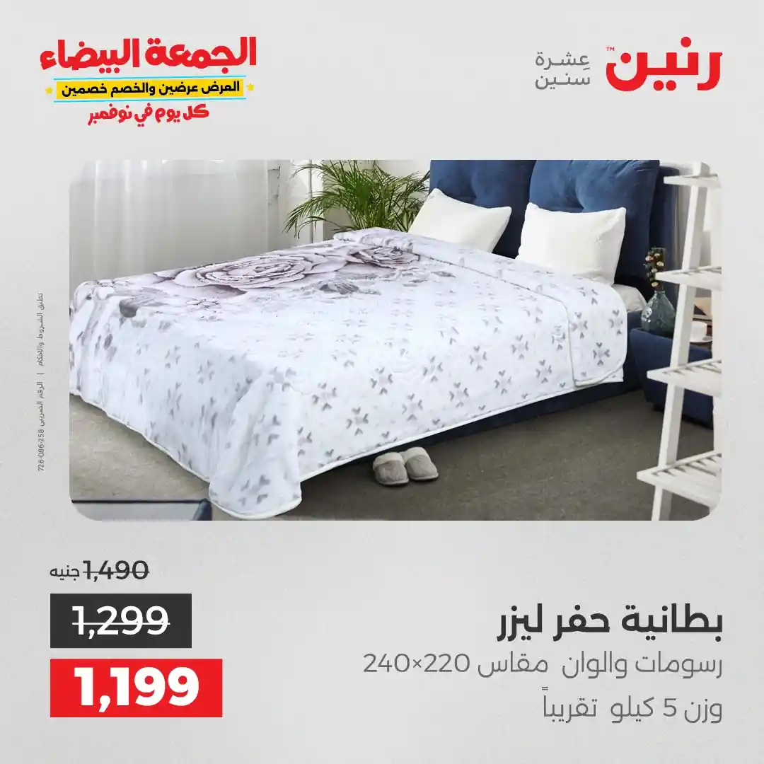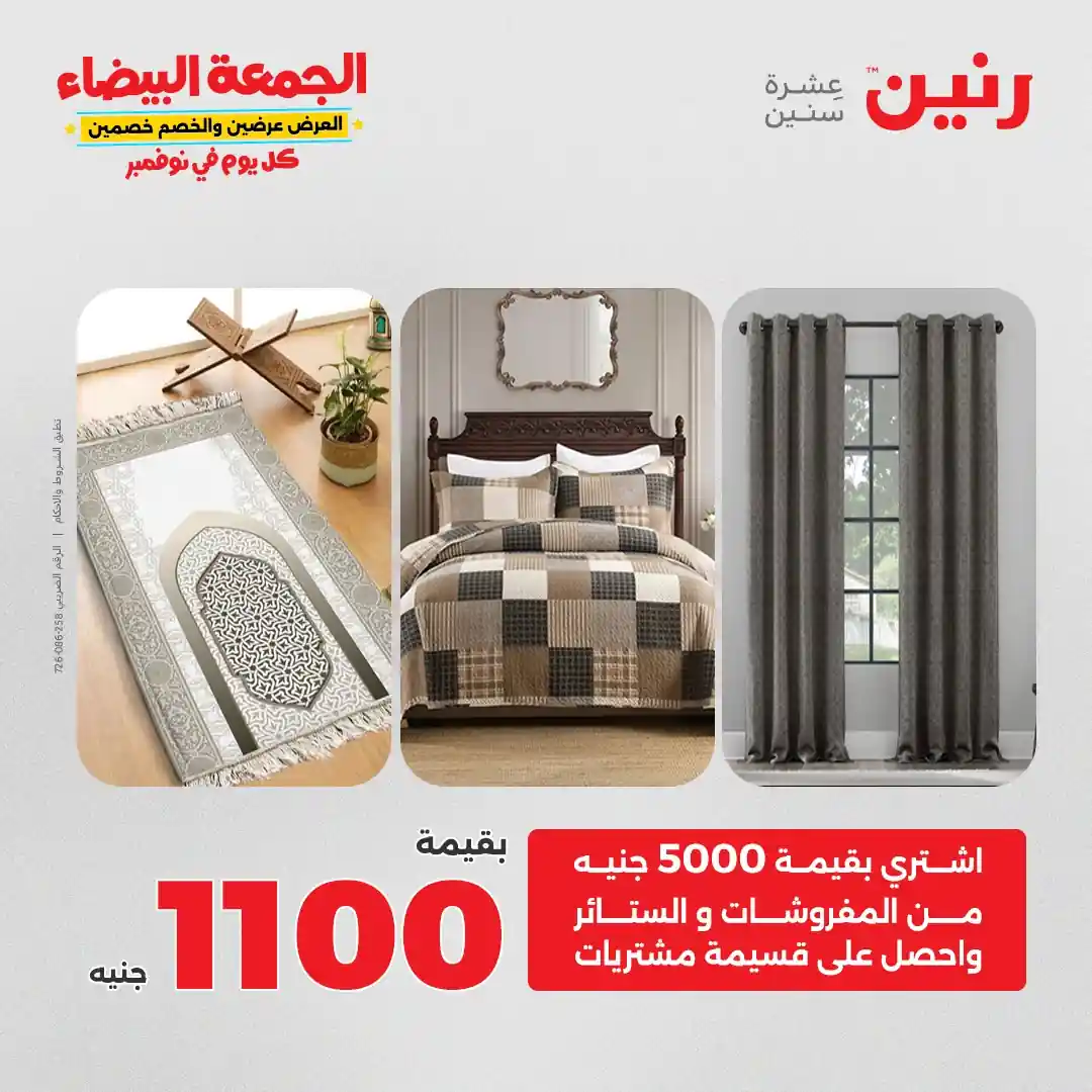 عروض رنين اليوم الاثنين 3 نوفمبر 2025 المفروشات والمنسوجات بجميع فروع رنين