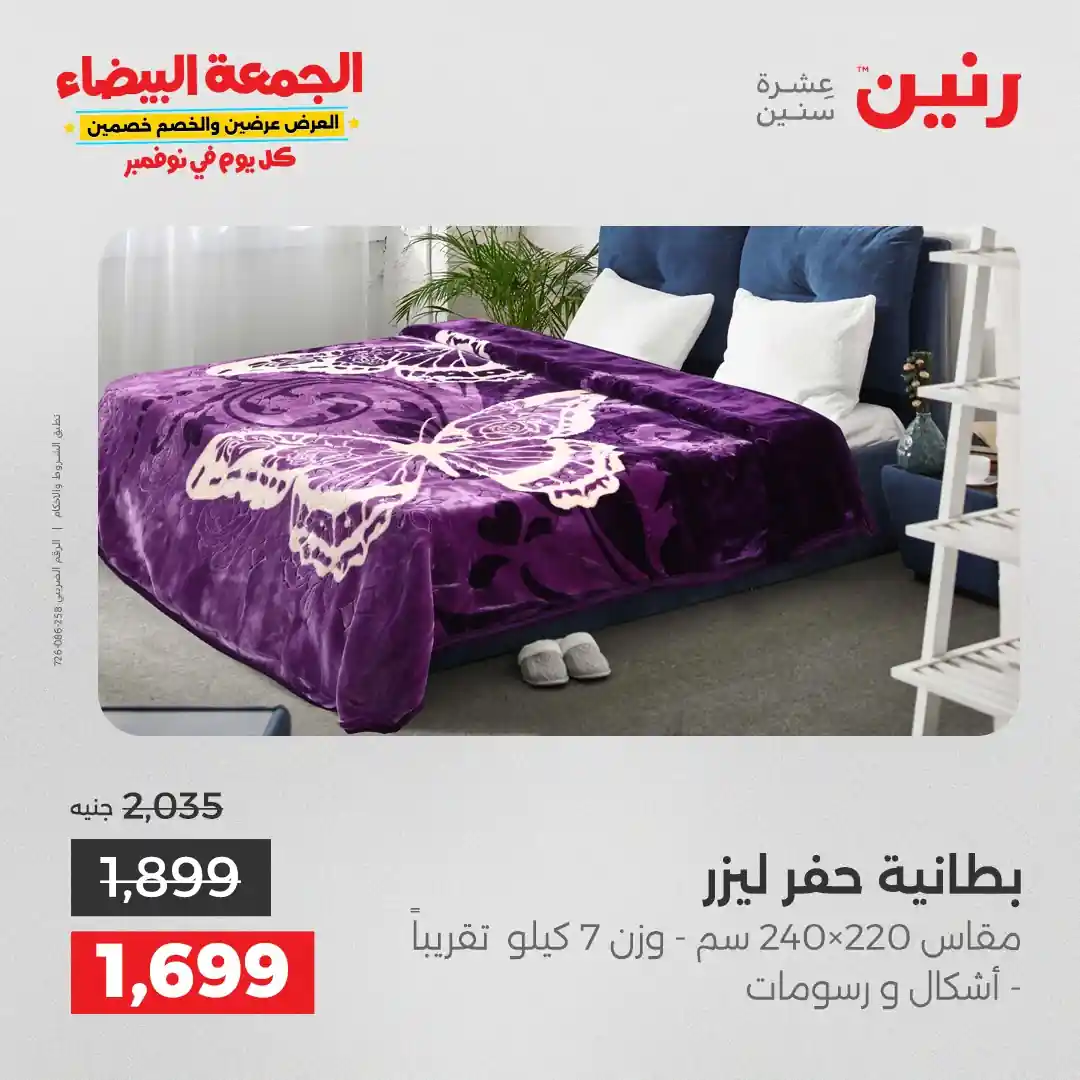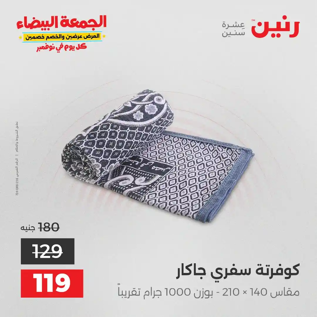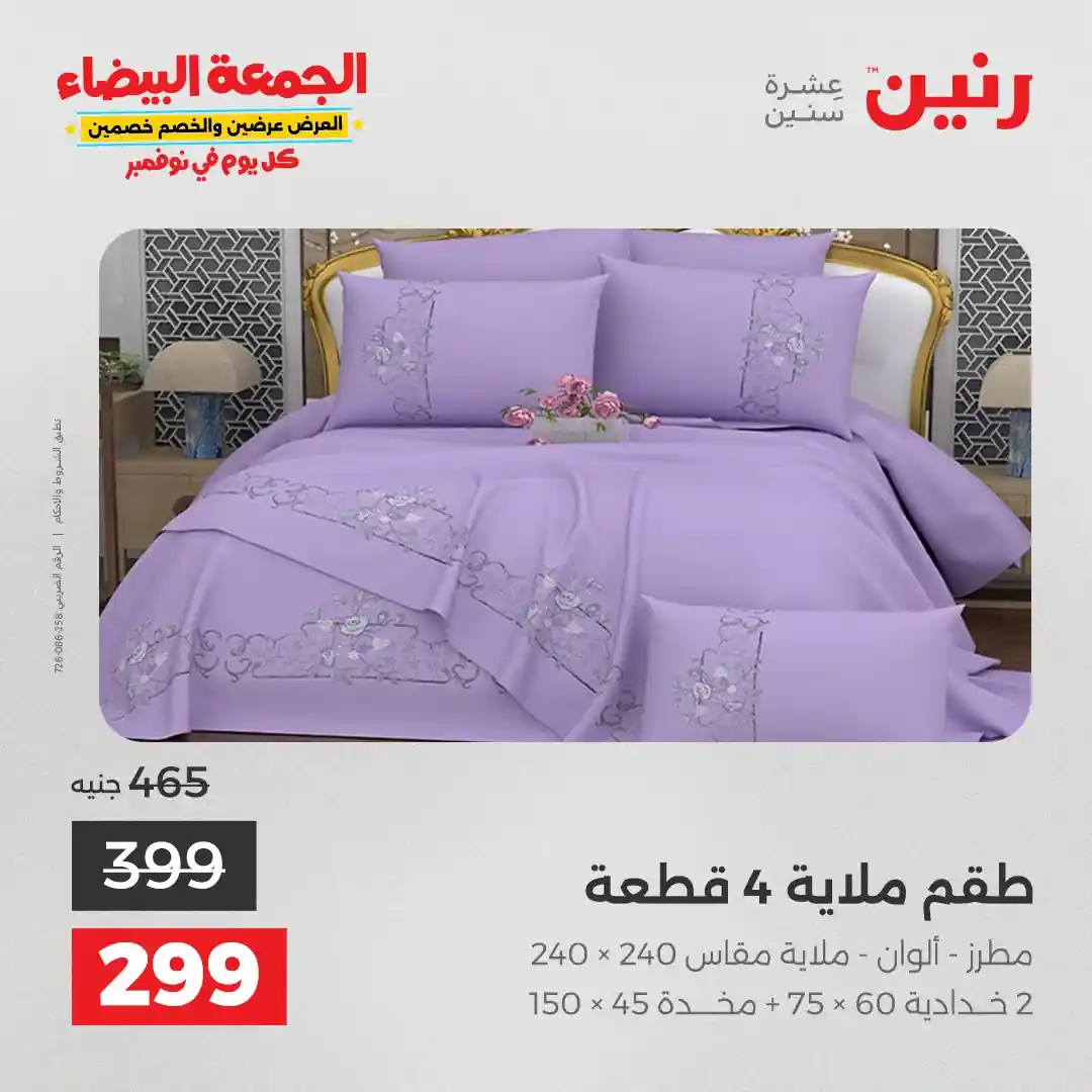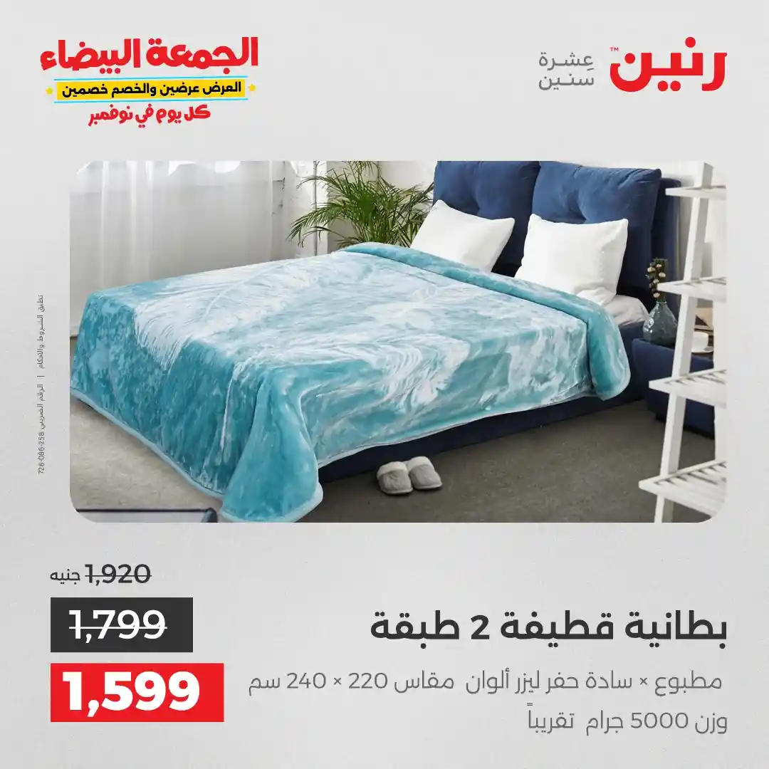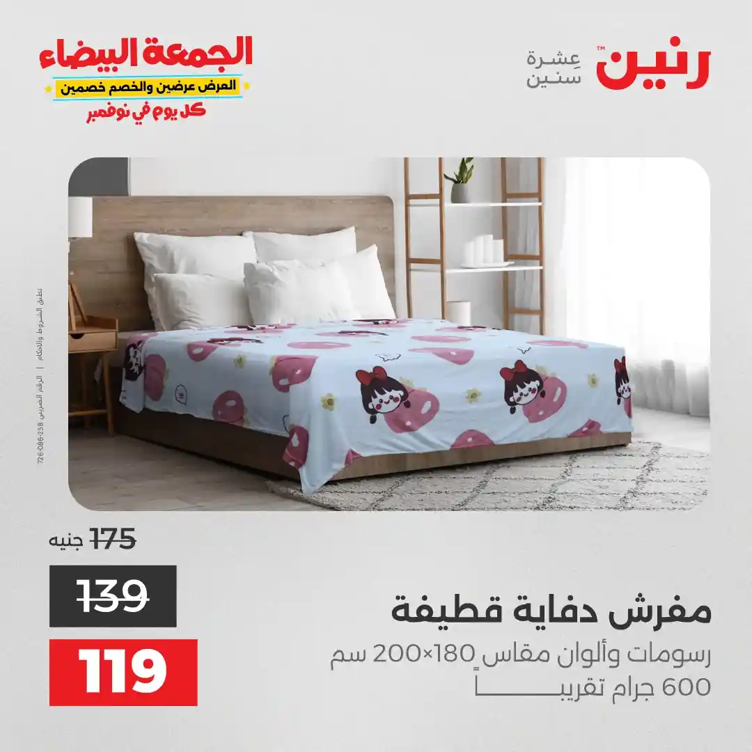 عروض رنين اليوم الاثنين 3 نوفمبر 2025 المفروشات والمنسوجات بجميع فروع رنين
