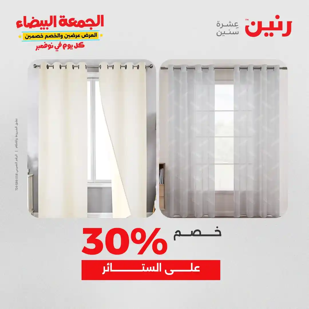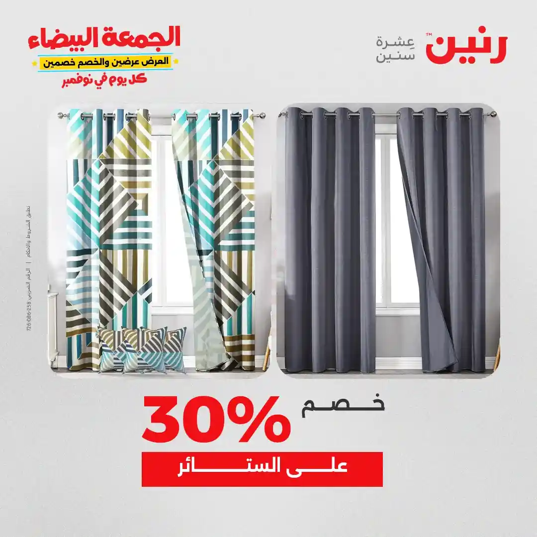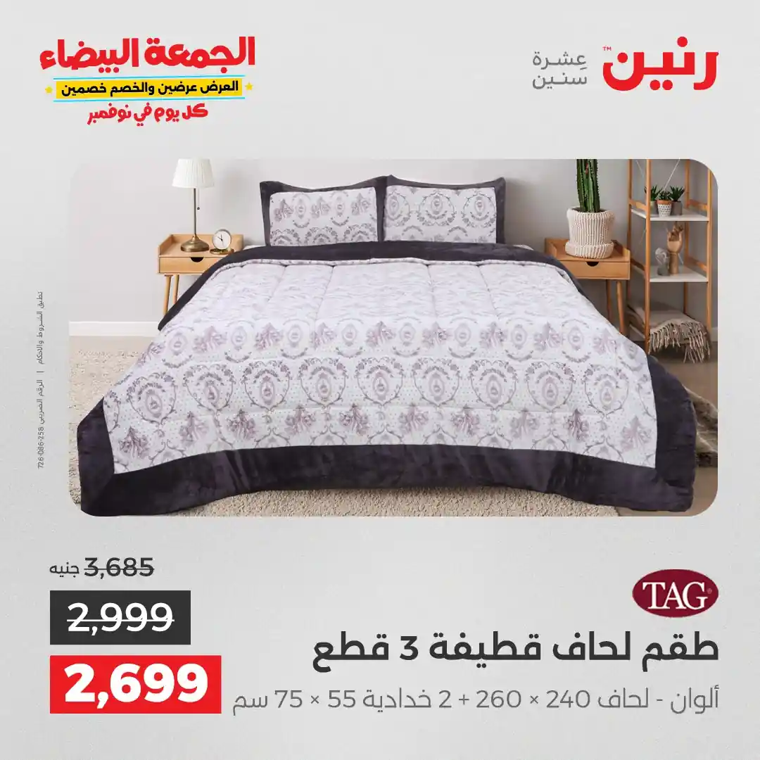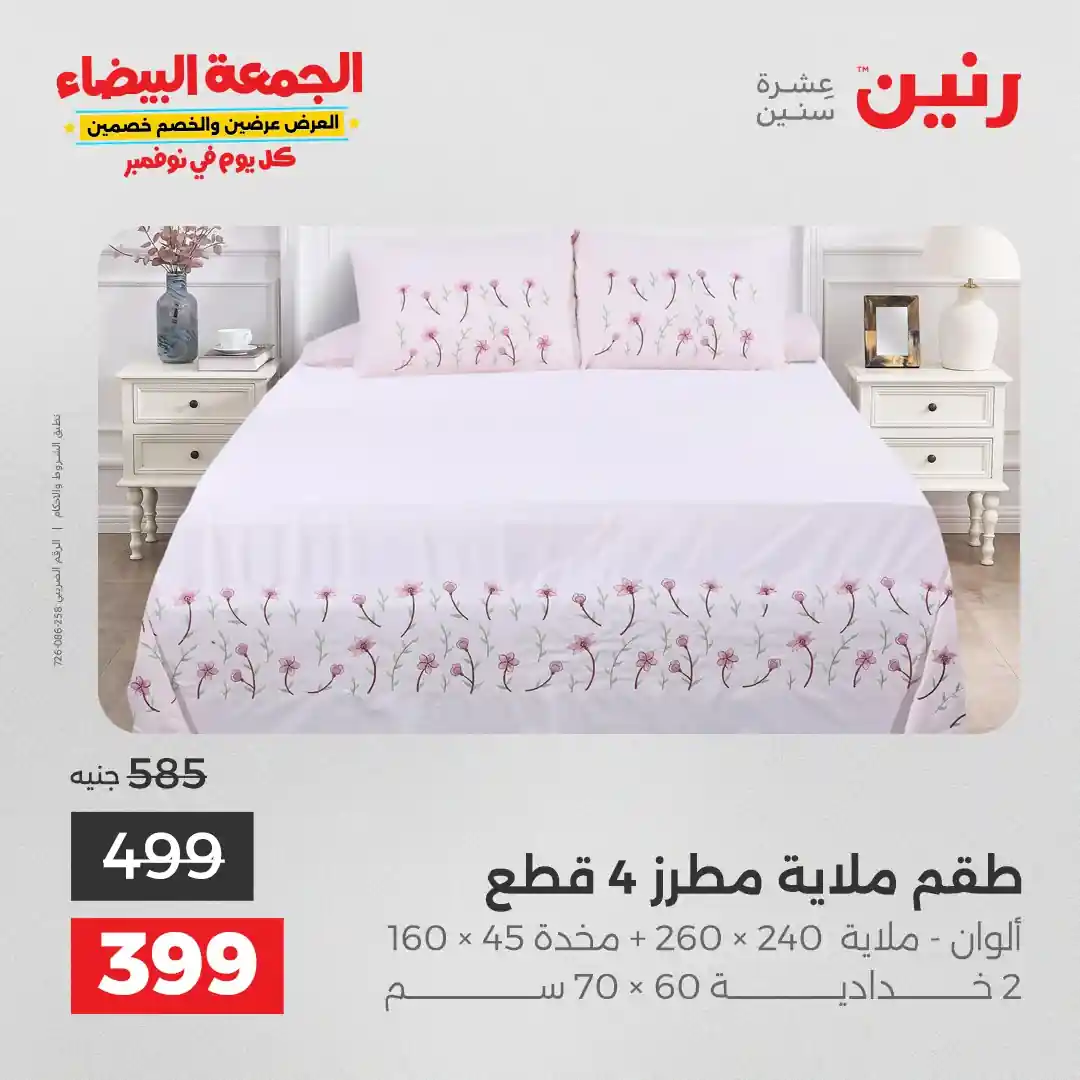 عروض رنين اليوم الاثنين 3 نوفمبر 2025 المفروشات والمنسوجات بجميع فروع رنين