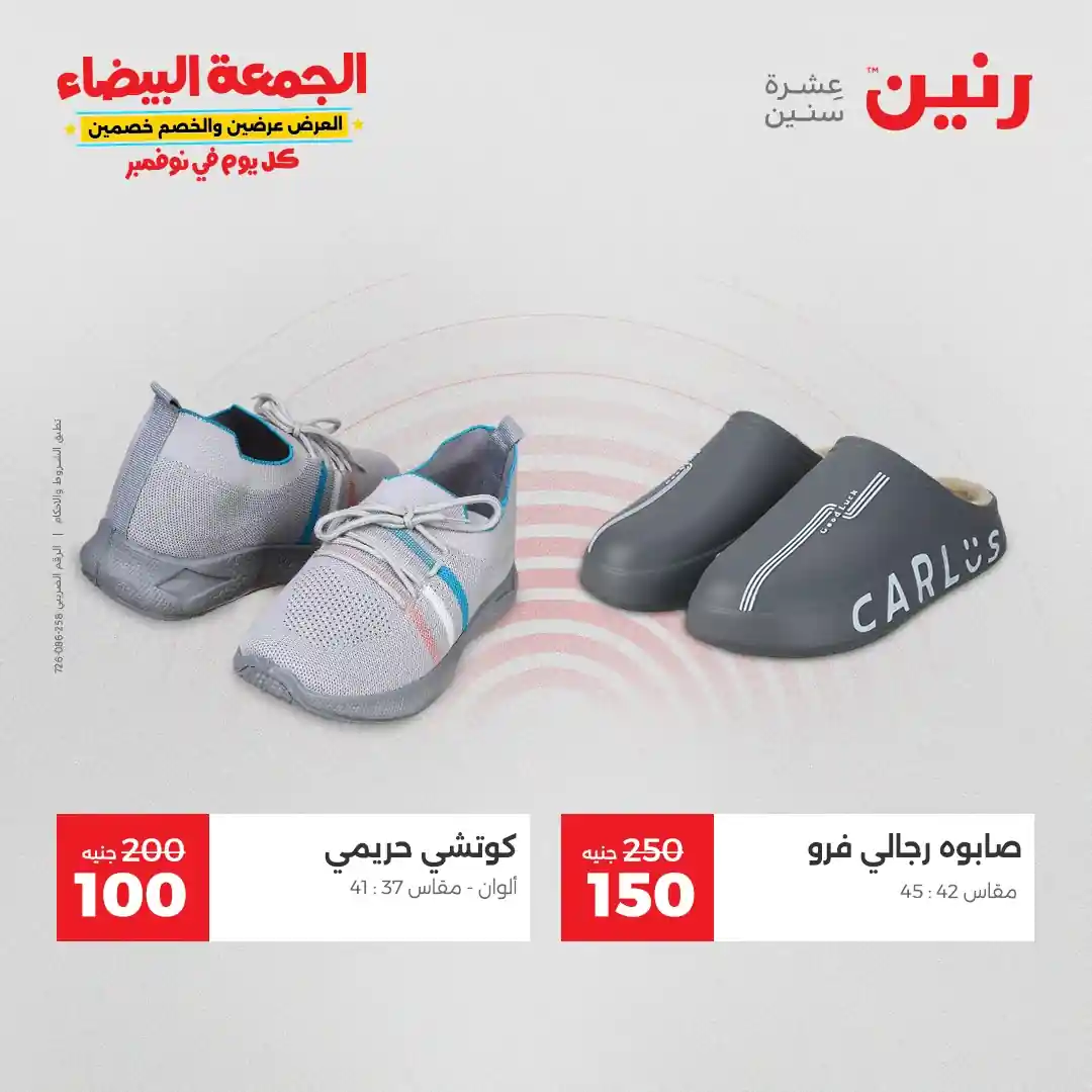 تقدم شركة رنين للادوات المنزلية عروض يومية لجميع ايام الاسبوع على الادوات المنزلية والاجهزة الكهربائية كما تقدم مهرجان عروض ال 15 جنيه الاحد من كل اسبوع ومهرجان عروض ال 99 جنيه الثلاثاء من كل اسبوع ومهرجان عروض ال 10 جنيه الاربعاء من كل اسبوع ومهرجان عروض ال 20 جنيه الجمعة والسبت من كل اسبوع واليكم احدث عروض رنين