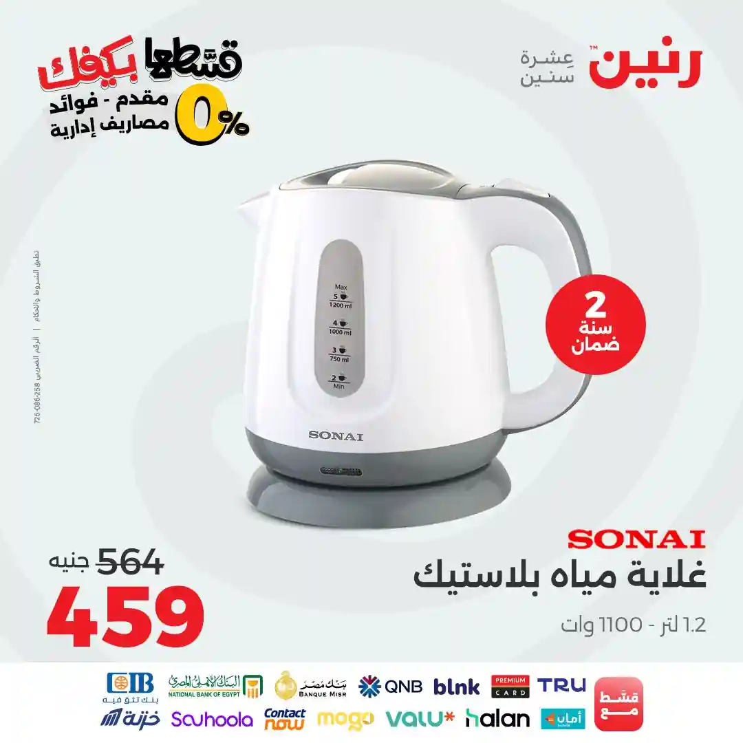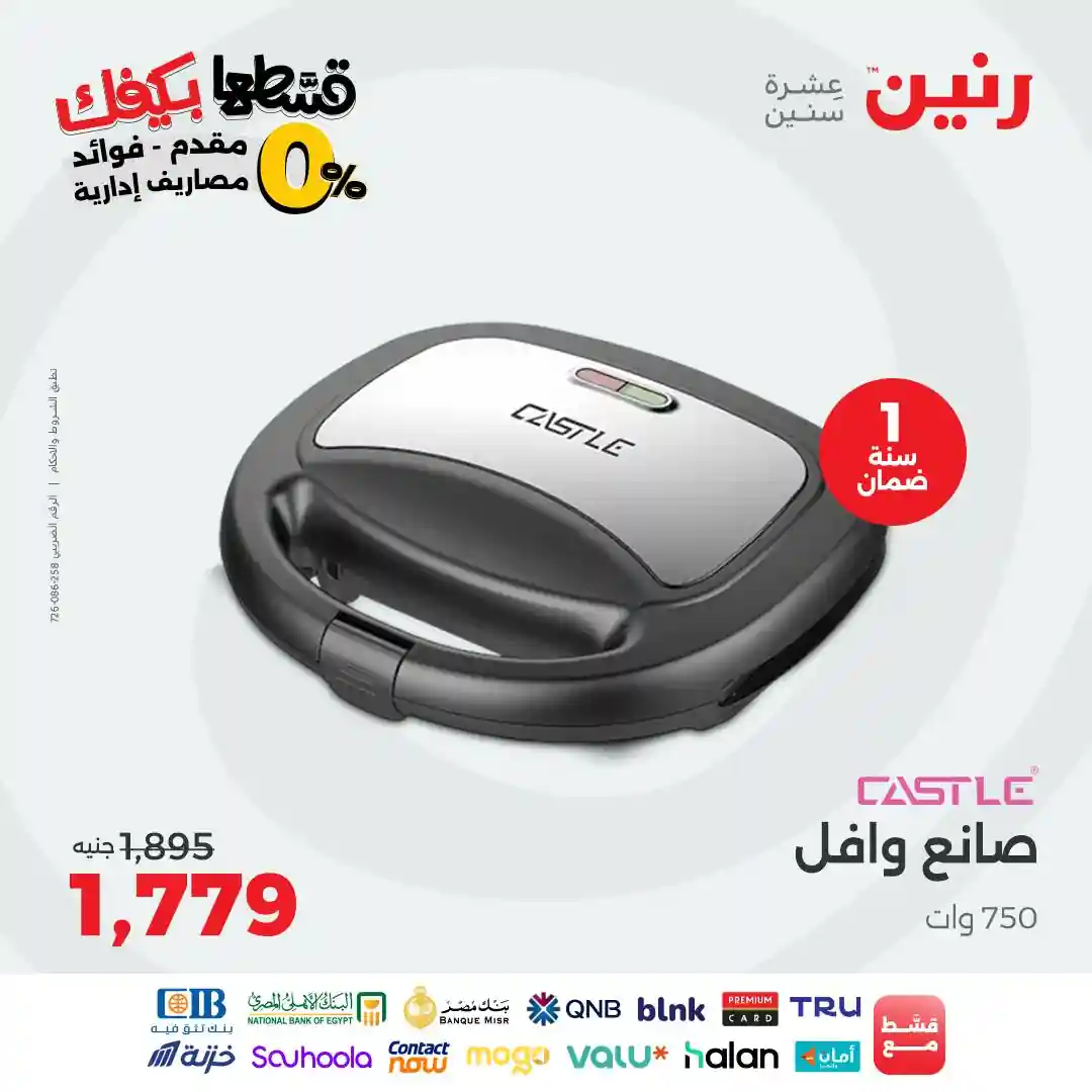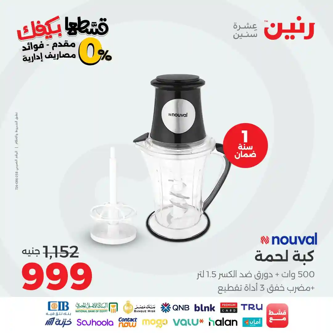 تقدم شركة رنين للادوات المنزلية عروض يومية لجميع ايام الاسبوع على الادوات المنزلية والاجهزة الكهربائية كما تقدم مهرجان عروض ال 15 جنيه الاحد من كل اسبوع ومهرجان عروض ال 99 جنيه الثلاثاء من كل اسبوع ومهرجان عروض ال 10 جنيه الاربعاء من كل اسبوع ومهرجان عروض ال 20 جنيه الجمعة والسبت من كل اسبوع واليكم احدث عروض رنين
