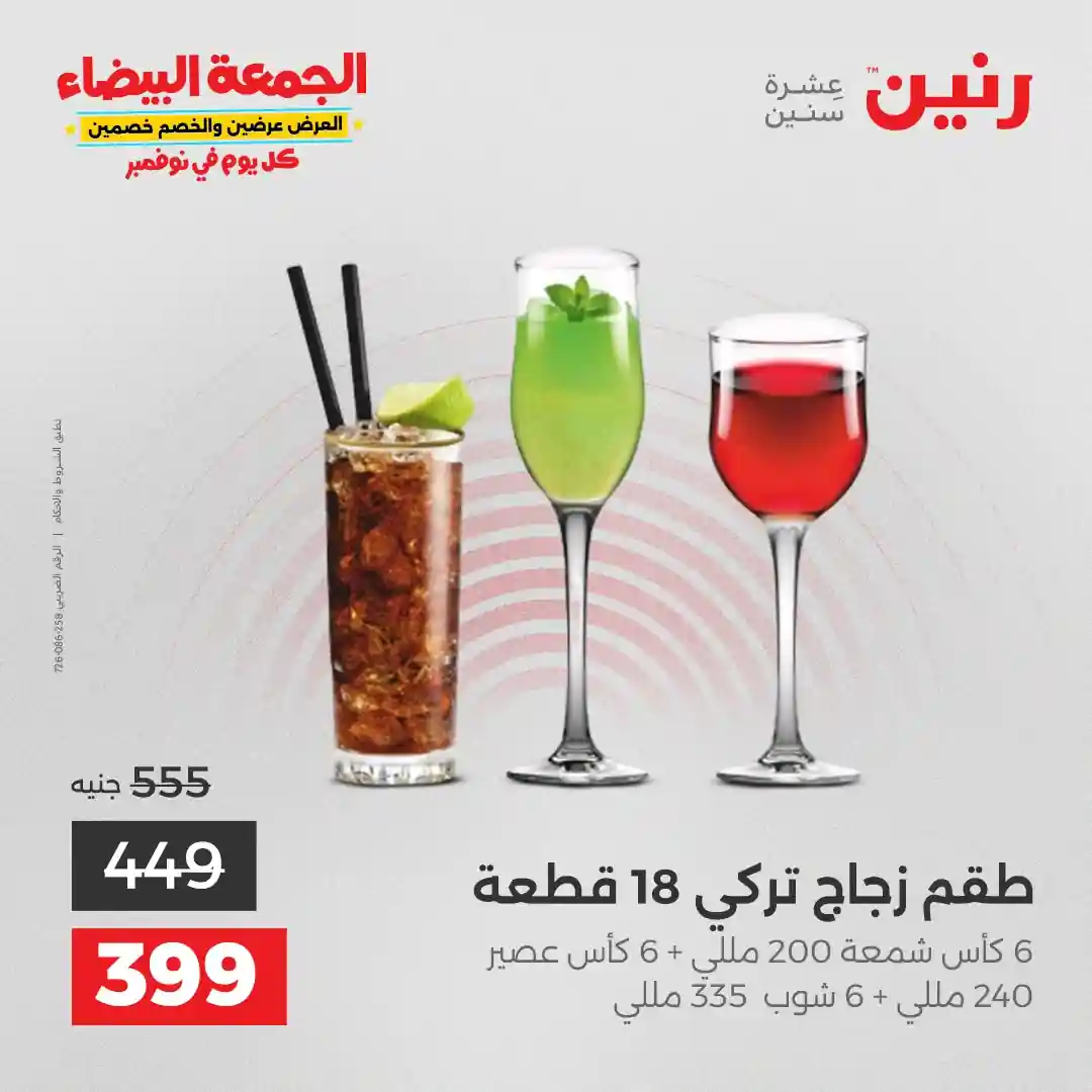 تقدم شركة رنين للادوات المنزلية عروض يومية لجميع ايام الاسبوع على الادوات المنزلية والاجهزة الكهربائية كما تقدم مهرجان عروض ال 15 جنيه الاحد من كل اسبوع ومهرجان عروض ال 99 جنيه الثلاثاء من كل اسبوع ومهرجان عروض ال 10 جنيه الاربعاء من كل اسبوع ومهرجان عروض ال 20 جنيه الجمعة والسبت من كل اسبوع واليكم احدث عروض رنين