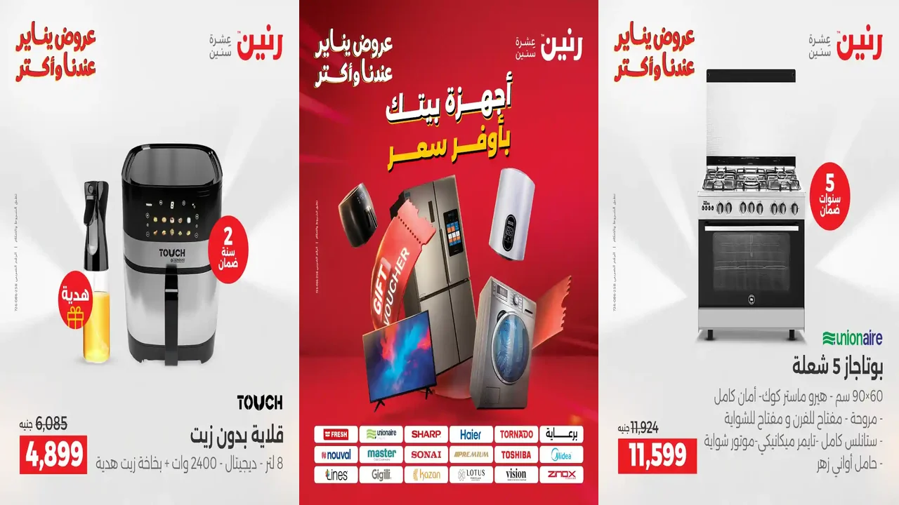 عروض رنين اليوم الخميس للسبت 8 – 9 – 10 يناير 2026 للاجهزة الكهربائية بجميع فروع رنين