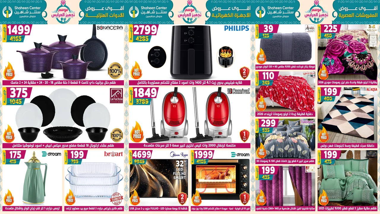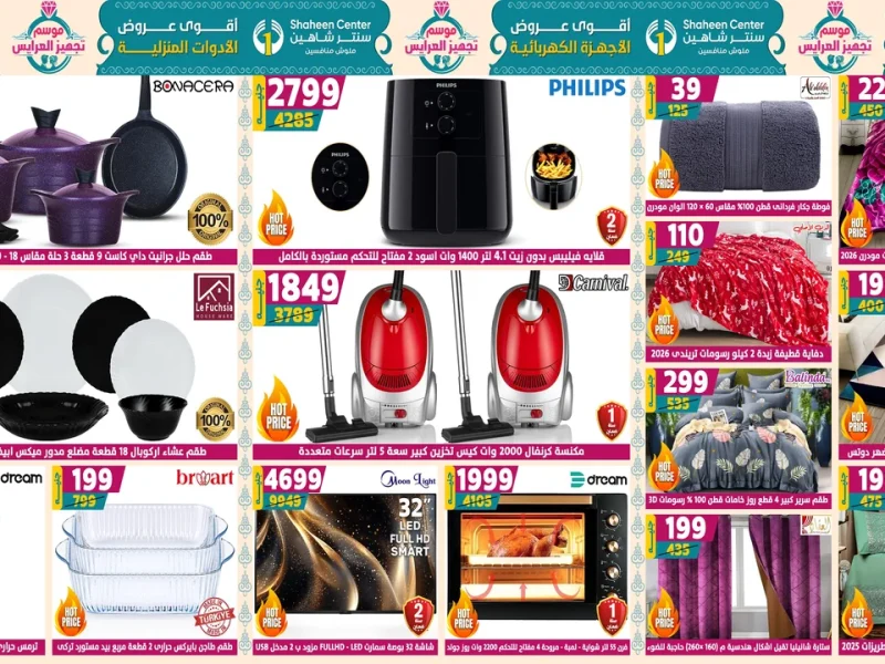 عروض سنتر شاهين الجديدة و ذلك من اليوم 25 سبتمبر حتى 1 اكتوبر 2025 موسم تجهيز العرايس او حتى نفاذ الكمية فى جميع فروع سنتر شاهين
