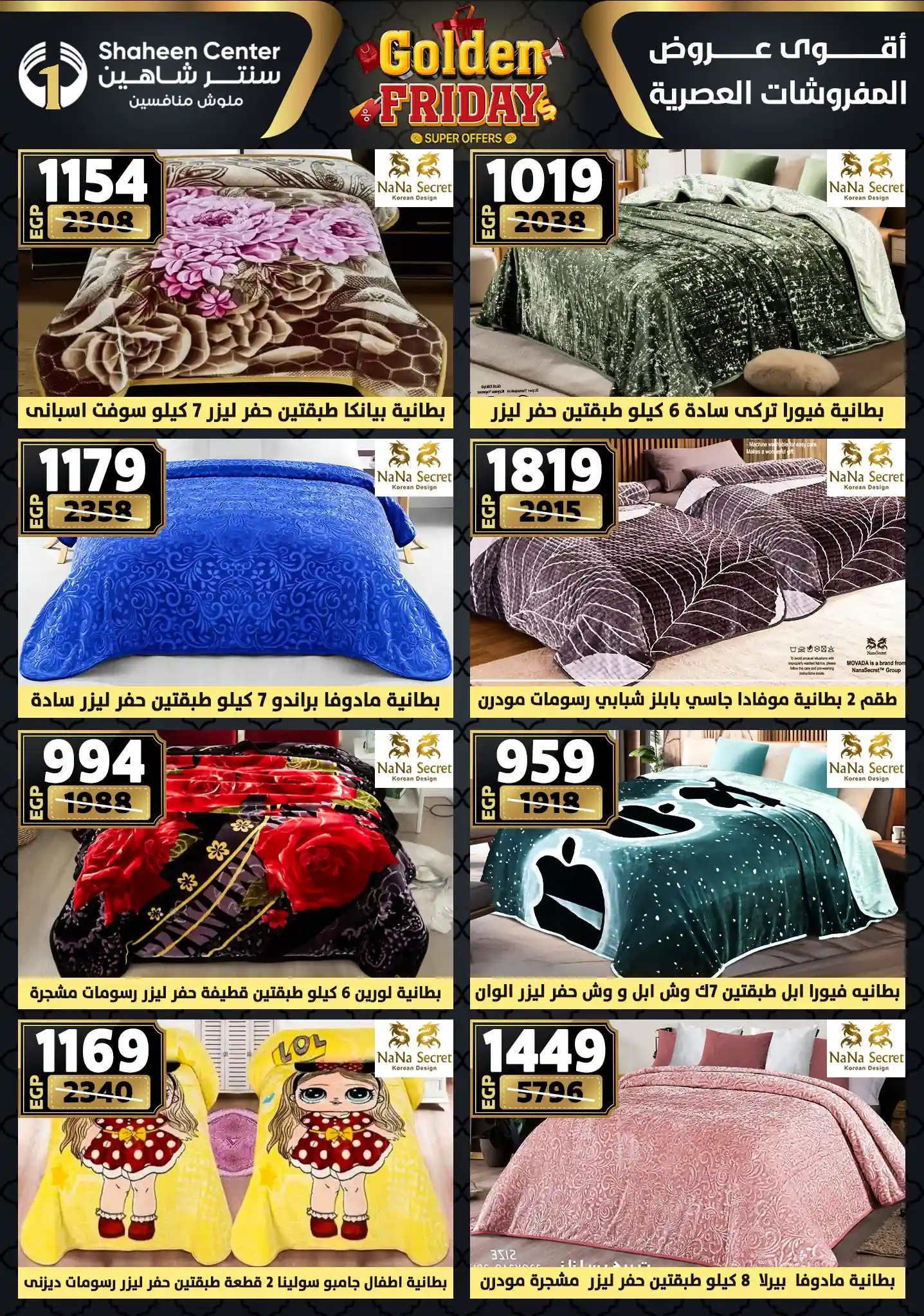 عروض سنتر شاهين الجديدة و ذلك من اليوم 11 ديسمبر حتى 17 ديسمبر 2025 جولدن فرايداى او حتى نفاذ الكمية فى جميع فروع سنتر شاهين