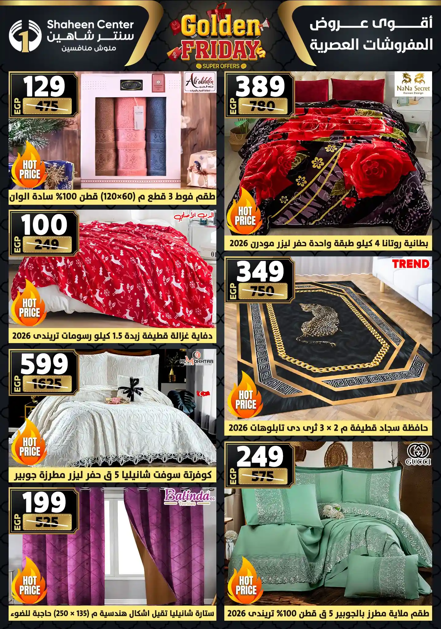عروض سنتر شاهين الجديدة و ذلك من اليوم 18 ديسمبر حتى 24 ديسمبر 2025 جولدن فرايداى او حتى نفاذ الكمية فى جميع فروع سنتر شاهين