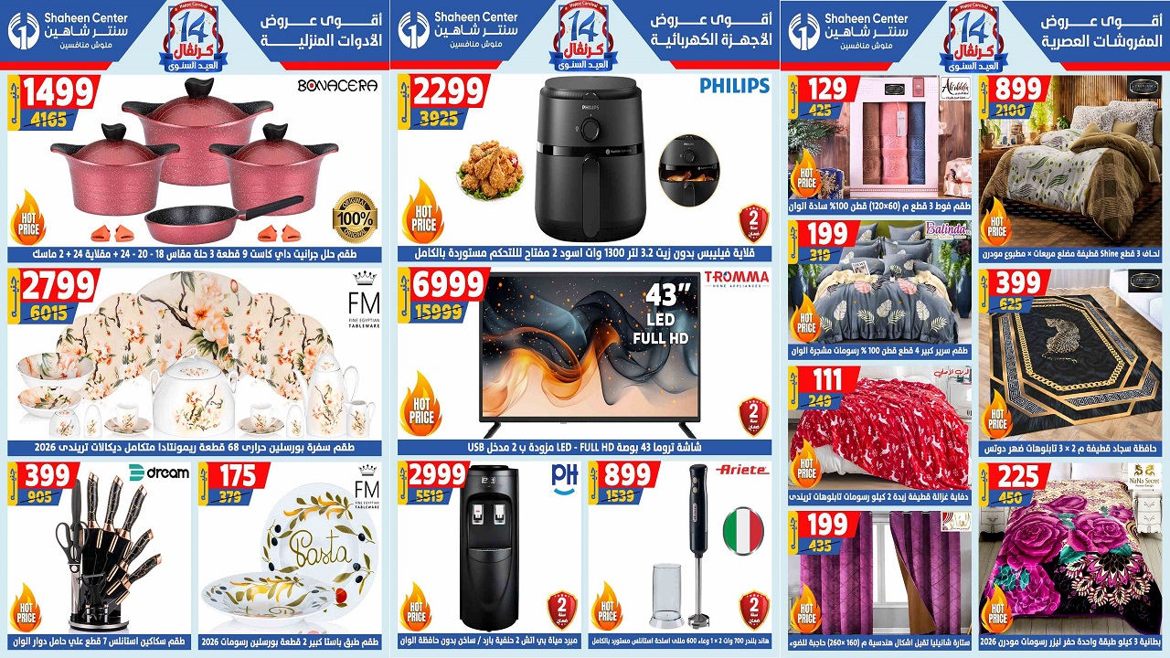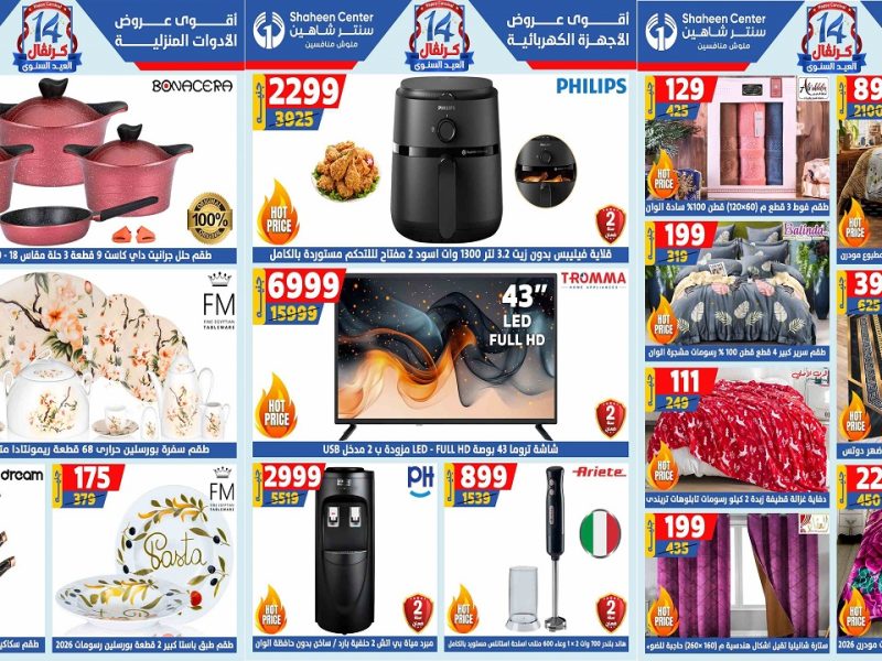عروض سنتر شاهين الجديدة و ذلك من اليوم 21 اغسطس حتى 27 اغسطس 2025 الكرنفال السنوى او حتى نفاذ الكمية فى جميع فروع سنتر شاهين
