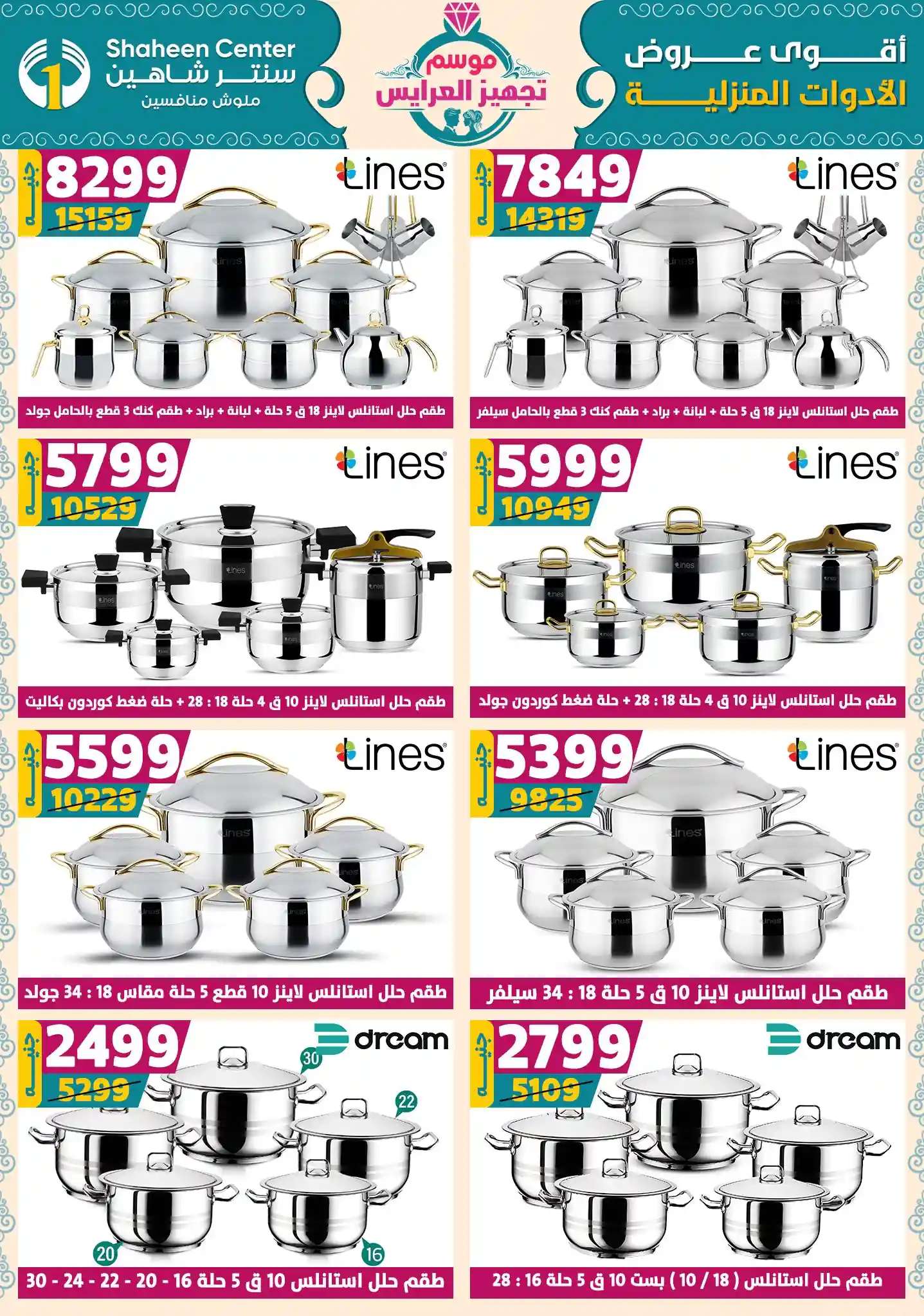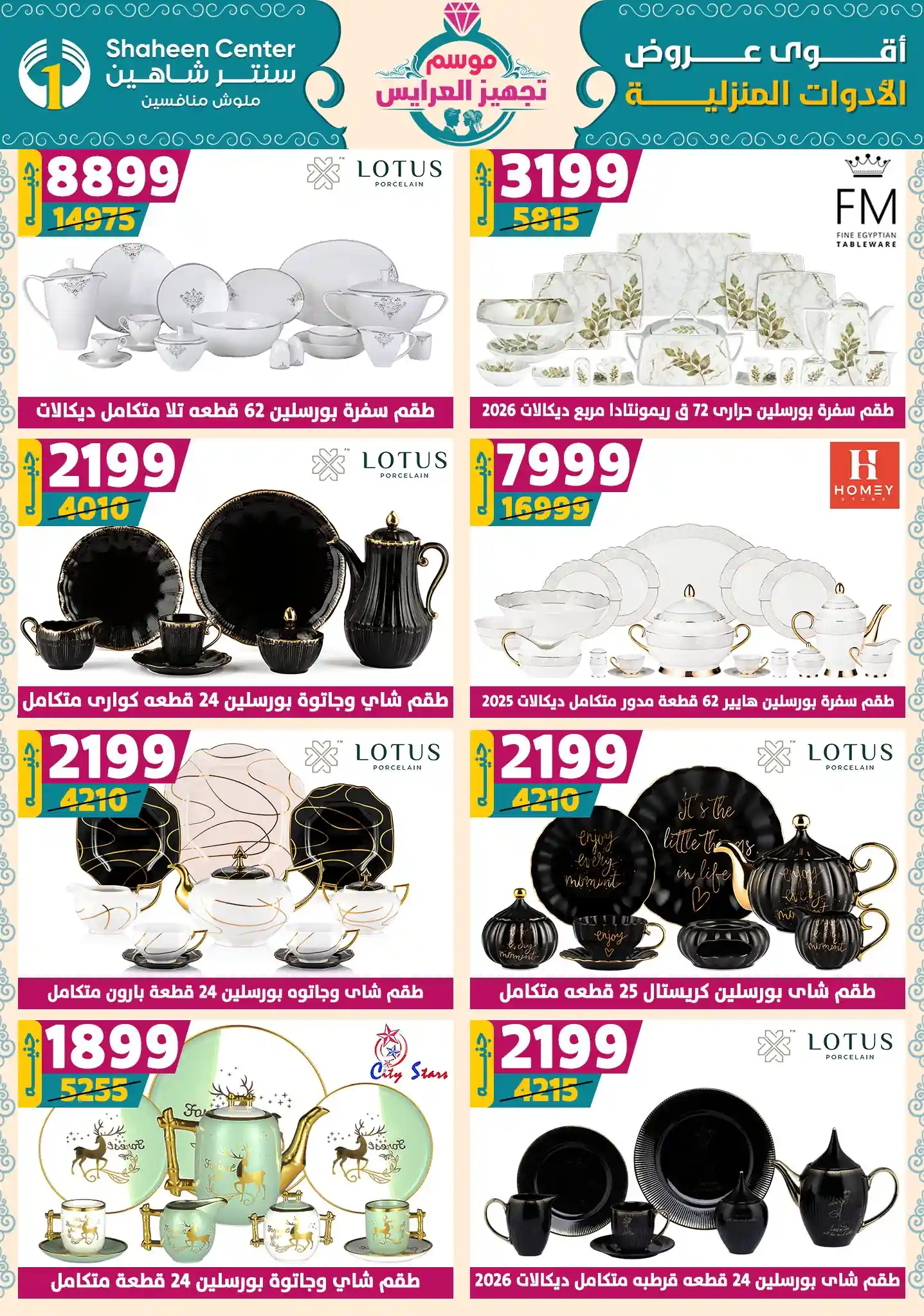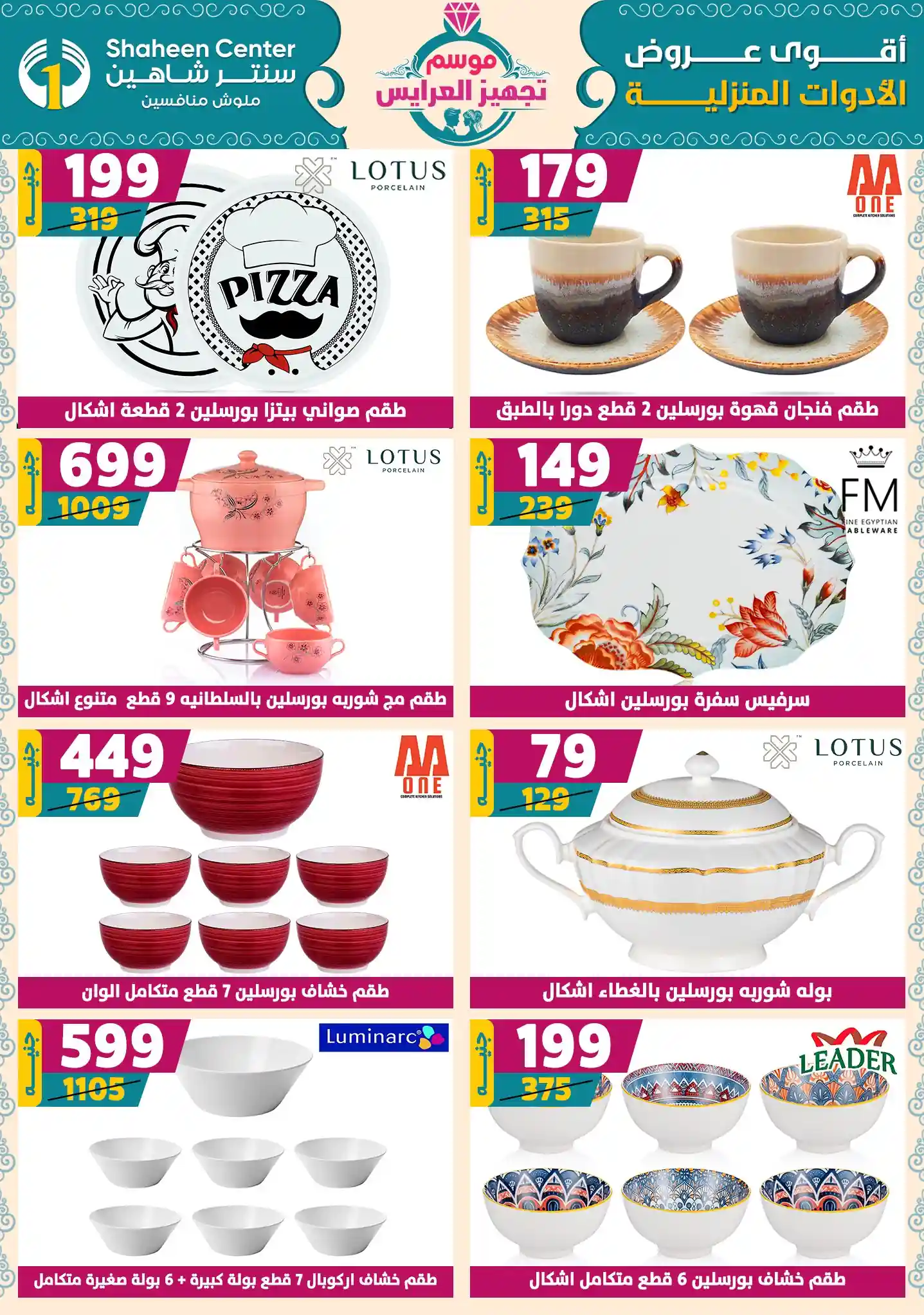 عروض سنتر شاهين الجديدة و ذلك من اليوم 23 اكتوبر حتى 29 اكتوبر 2025 موسم تجهيز العرايس او حتى نفاذ الكمية فى جميع فروع سنتر شاهين