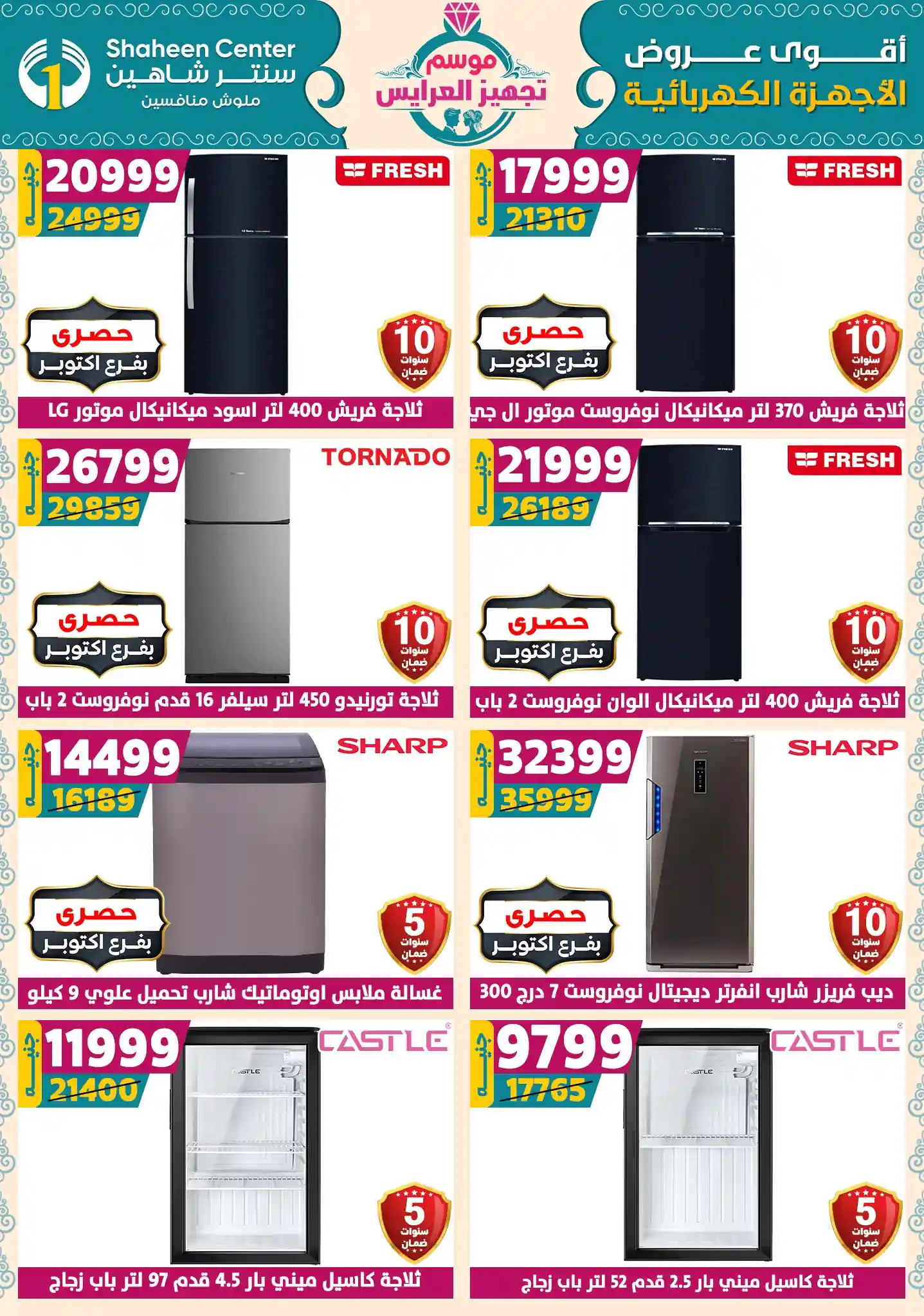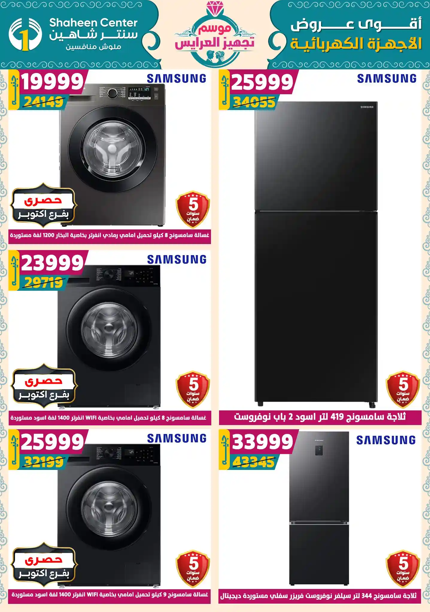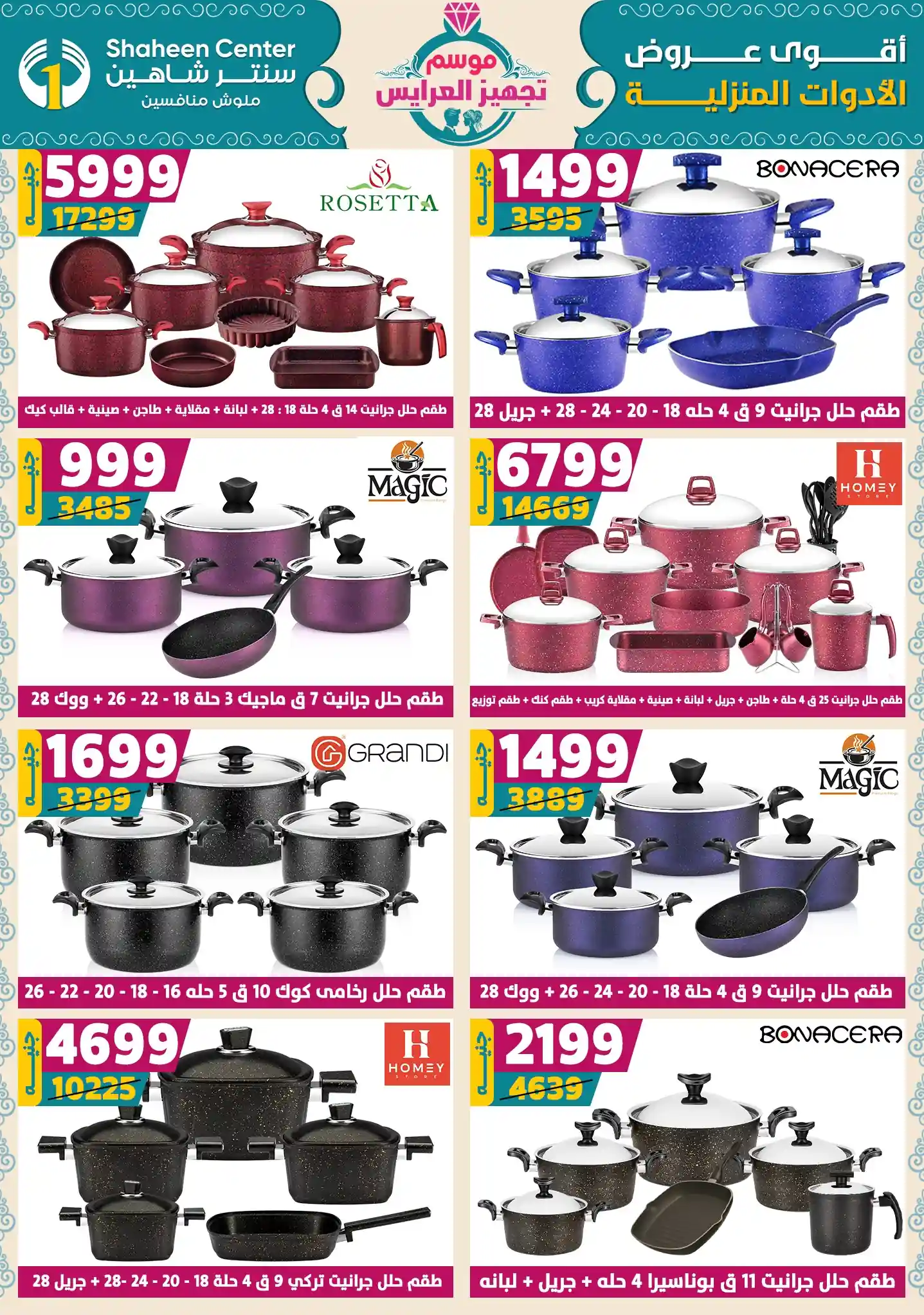 عروض سنتر شاهين الجديدة و ذلك من اليوم 23 اكتوبر حتى 29 اكتوبر 2025 موسم تجهيز العرايس او حتى نفاذ الكمية فى جميع فروع سنتر شاهين