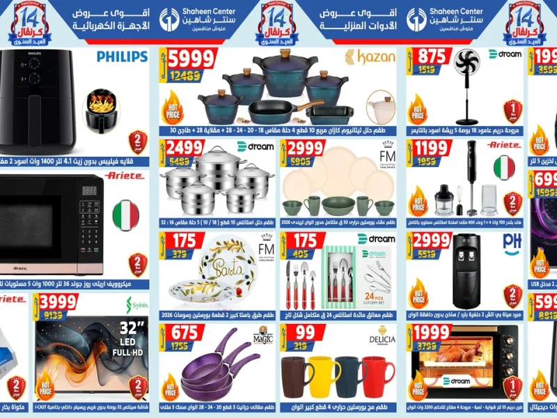 عروض سنتر شاهين الجديدة و ذلك من اليوم 28 اغسطس حتى الاربعاء 3 سبتمبر 2025 الكرنفال السنوى او حتى نفاذ الكمية فى جميع فروع سنتر شاهين