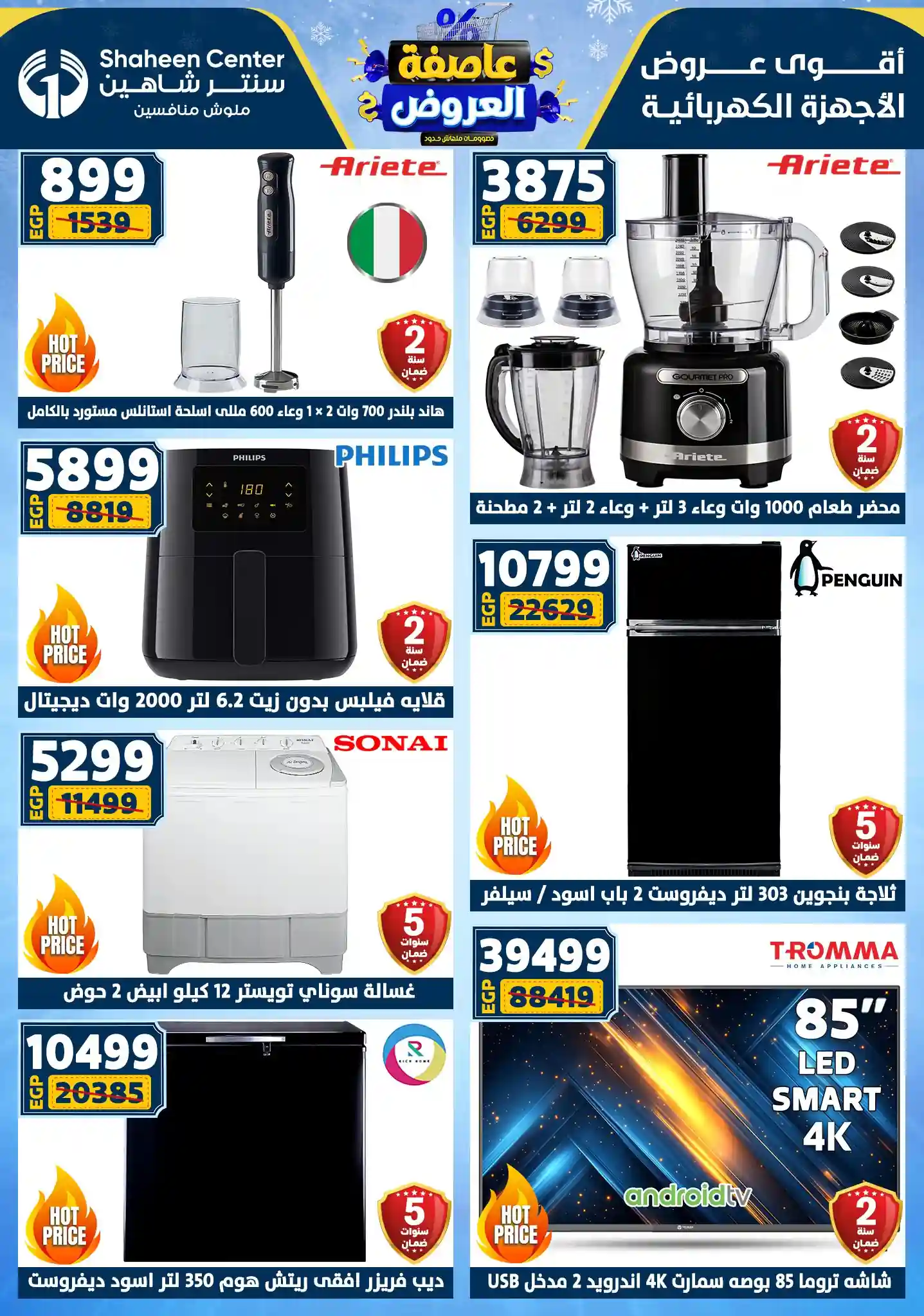 عروض سنتر شاهين الجديدة و ذلك من اليوم 1 يناير حتى 7 يناير 2026 عاصفة العروض او حتى نفاذ الكمية فى جميع فروع سنتر شاهين