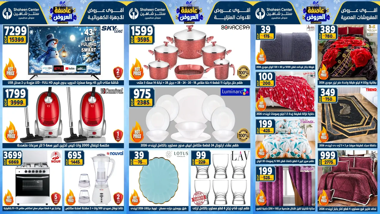 عروض سنتر شاهين الجديدة و ذلك من اليوم 1 يناير حتى 7 يناير 2026 عاصفة العروض او حتى نفاذ الكمية فى جميع فروع سنتر شاهين