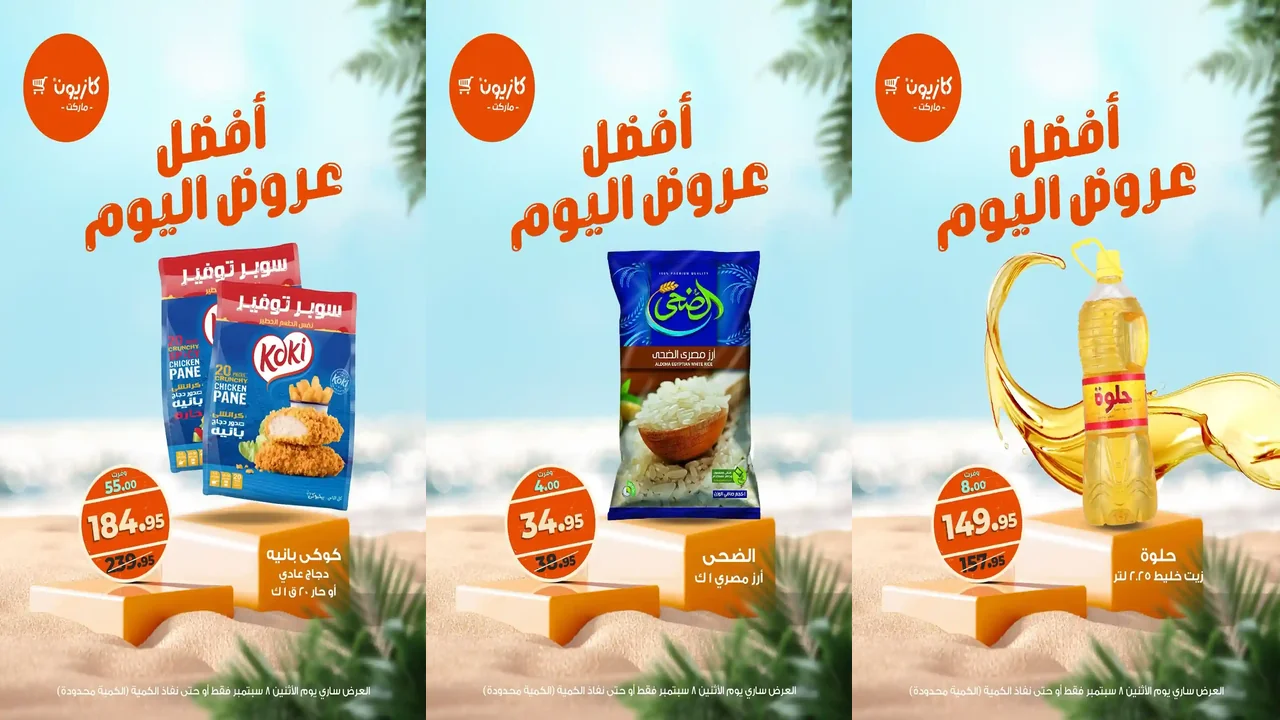 عروض كازيون اليوم الاثنين 8 سبتمبر 2025 افضل عروض اليوم بجميع الفروع