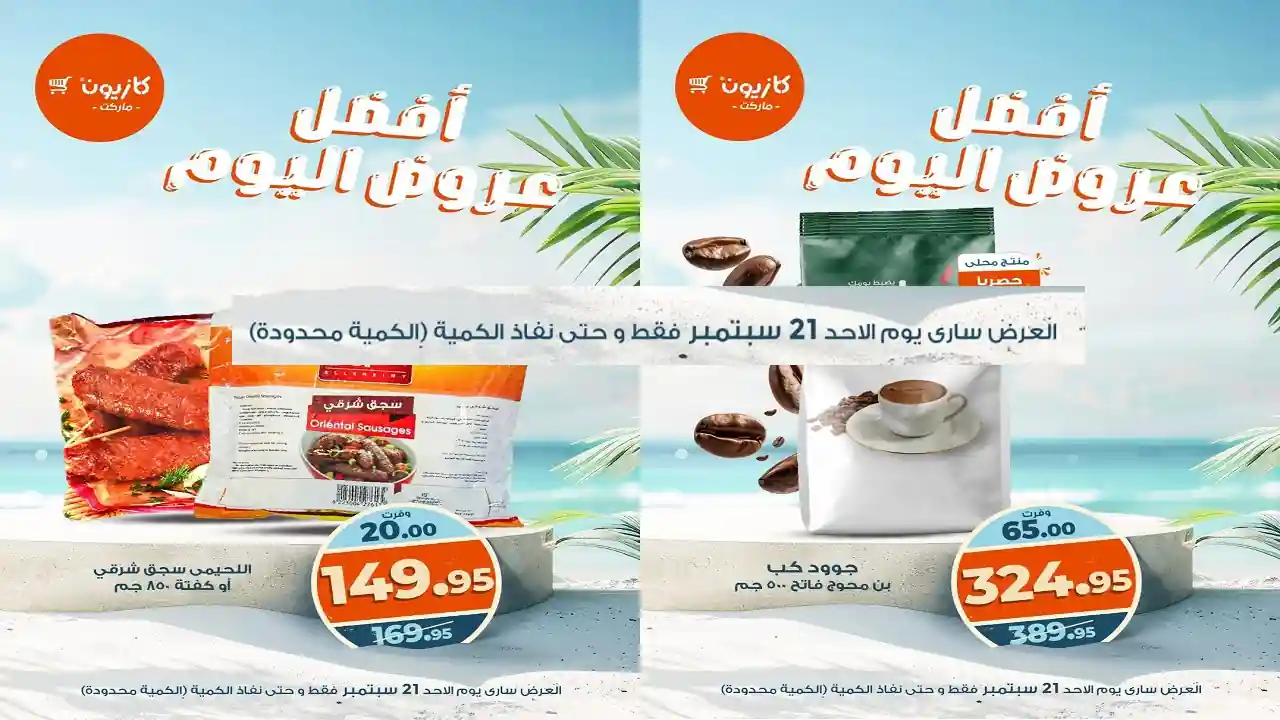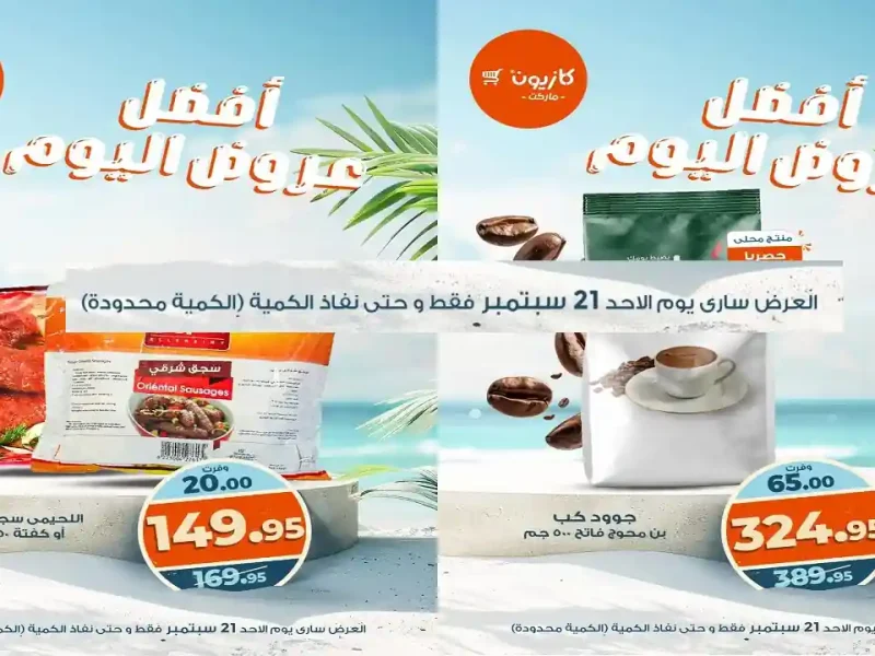 عروض كازيون اليوم الاحد 21 سبتمبر 2025 افضل عروض اليوم بجميع الفروع