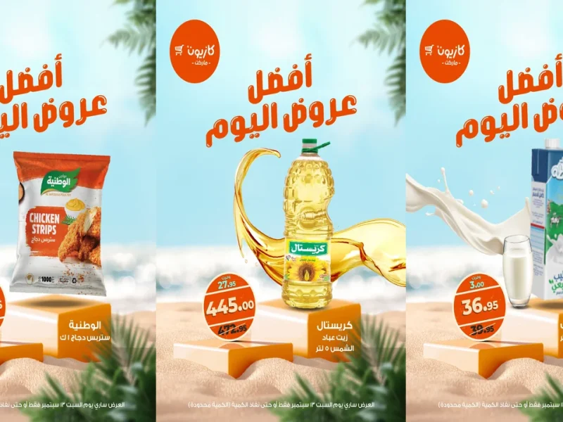 عروض نت تقدم لكم عروض كازيون ماركت الجديدة Kazyon – جنب بيتك – عروض كازيون اليوم الجديدة من السبت 13 سبتمبر 2025 افضل عروض اليوم اوحتى نفاذ الكمية بجميع الفروع.