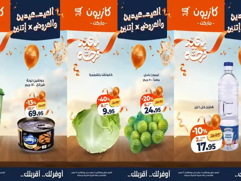 عروض نت تقدم لكم عروض كازيون ماركت الجديدة Kazyon – جنب بيتك – عروض كازيون اليوم الجديدة من 17 مارس حتى 23 مارس 2026 العيد عيدين اوحتى نفاذ الكمية بجميع الفروع.