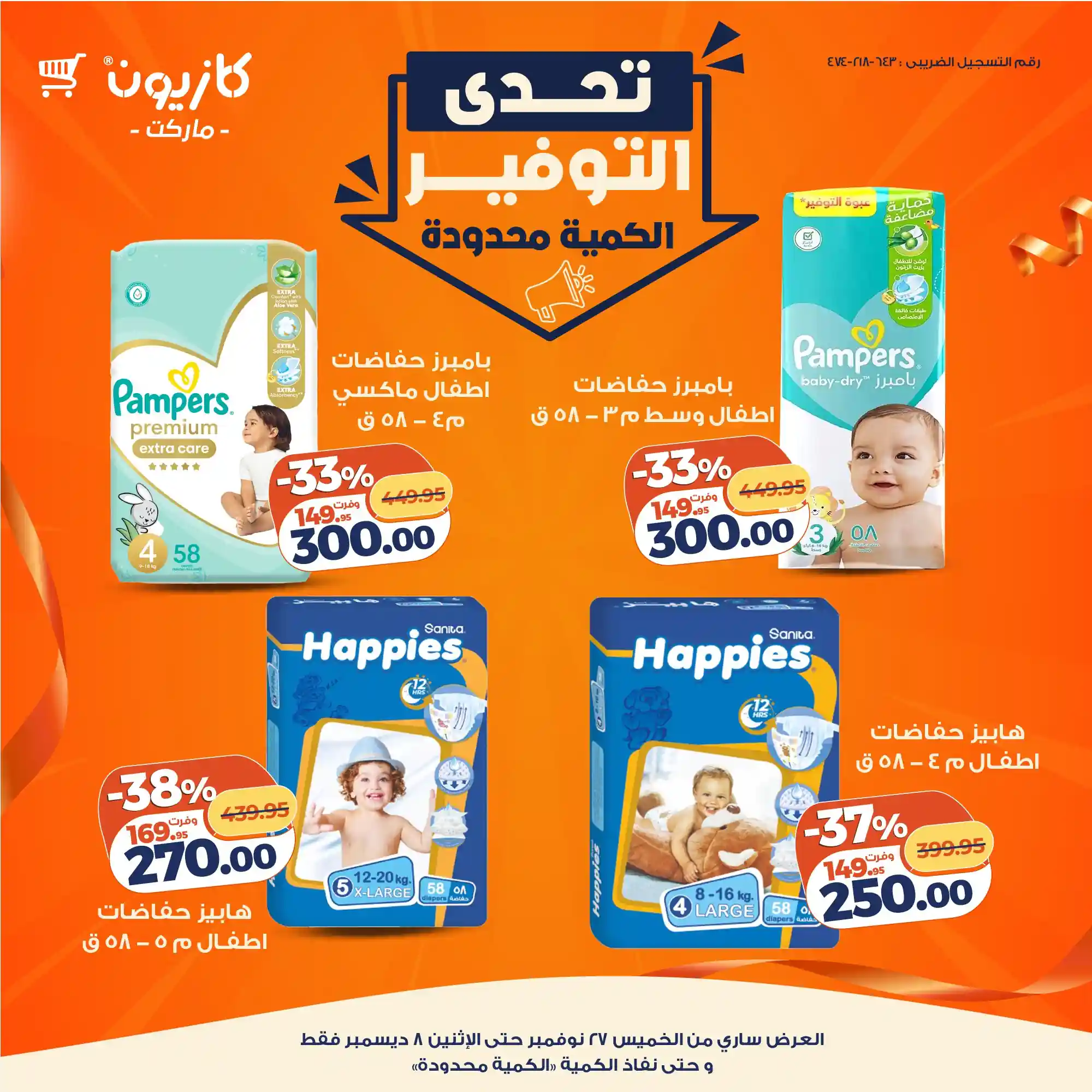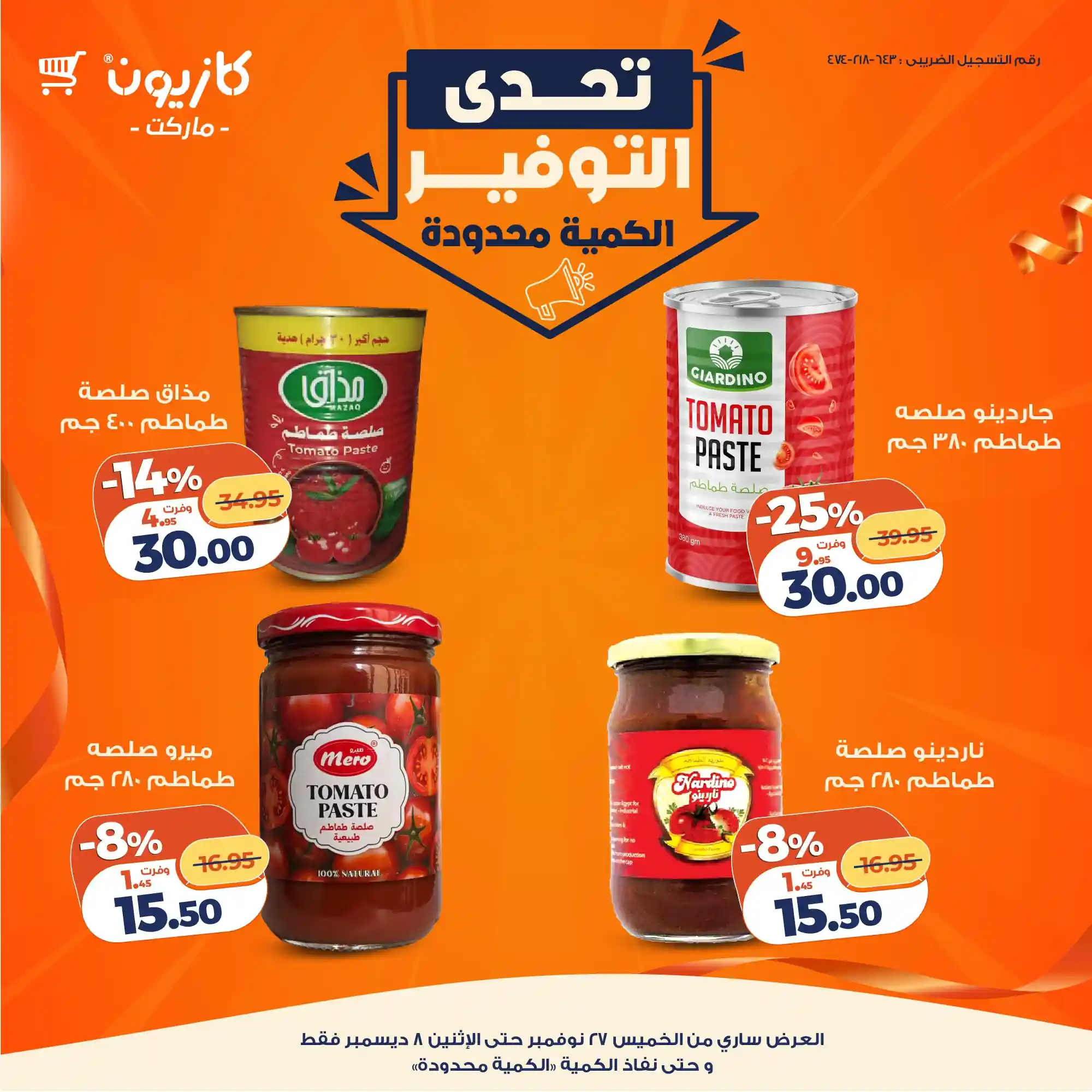 عروض نت تقدم لكم عروض كازيون ماركت الجديدة Kazyon – جنب بيتك – عروض كازيون اليوم الجديدة 27 نوفمبر حتى 8 ديسمبر 2025 تحدى التوفير اوحتى نفاذ الكمية بجميع الفروع.