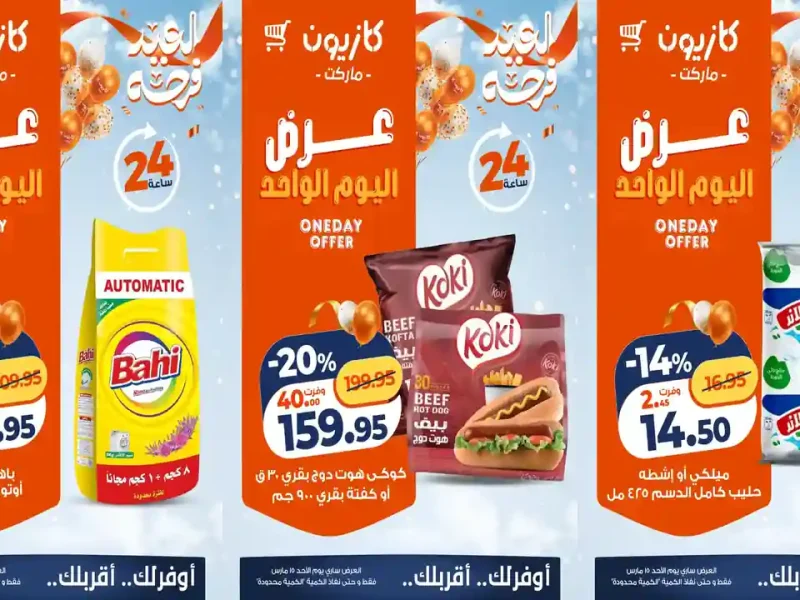 عروض نت تقدم لكم عروض كازيون ماركت الجديدة Kazyon – جنب بيتك – عروض كازيون اليوم الجديدة من الاحد 15 مارس 2026 افضل عروض اليوم اوحتى نفاذ الكمية بجميع الفروع.