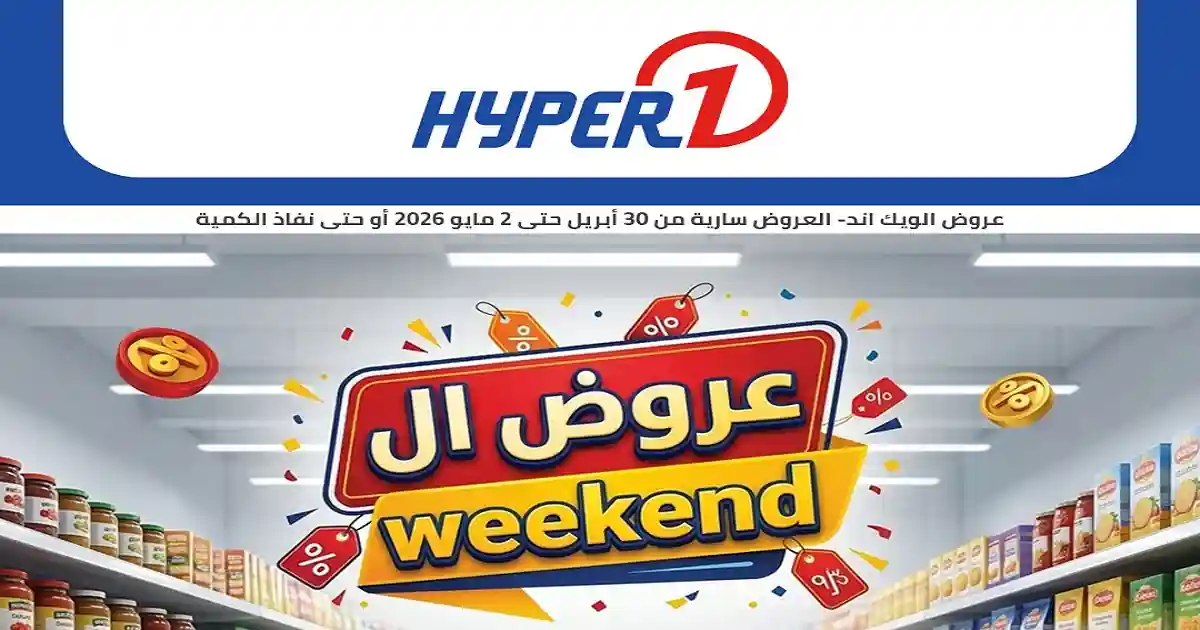 اكتشف عروض هايبر وان اليوم 30 ابريل حتى 2 مايو 2026 نهاية الاسبوع الآن واستفد بأفضل الأسعار قبل انتهاء العروض 🔥