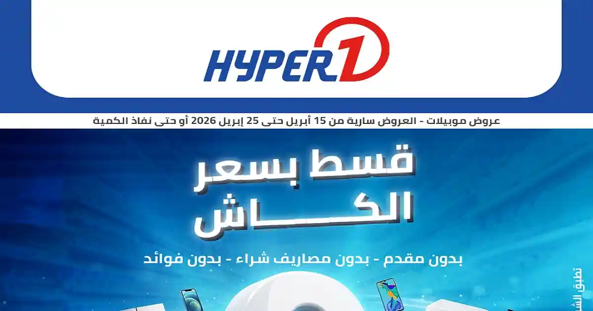 اكتشف عروض هايبر وان اليوم 15 ابريل حتى 25 ابريل 2026 خصومات الموبايلات الآن واستفد بأفضل الأسعار قبل انتهاء العروض 🔥
