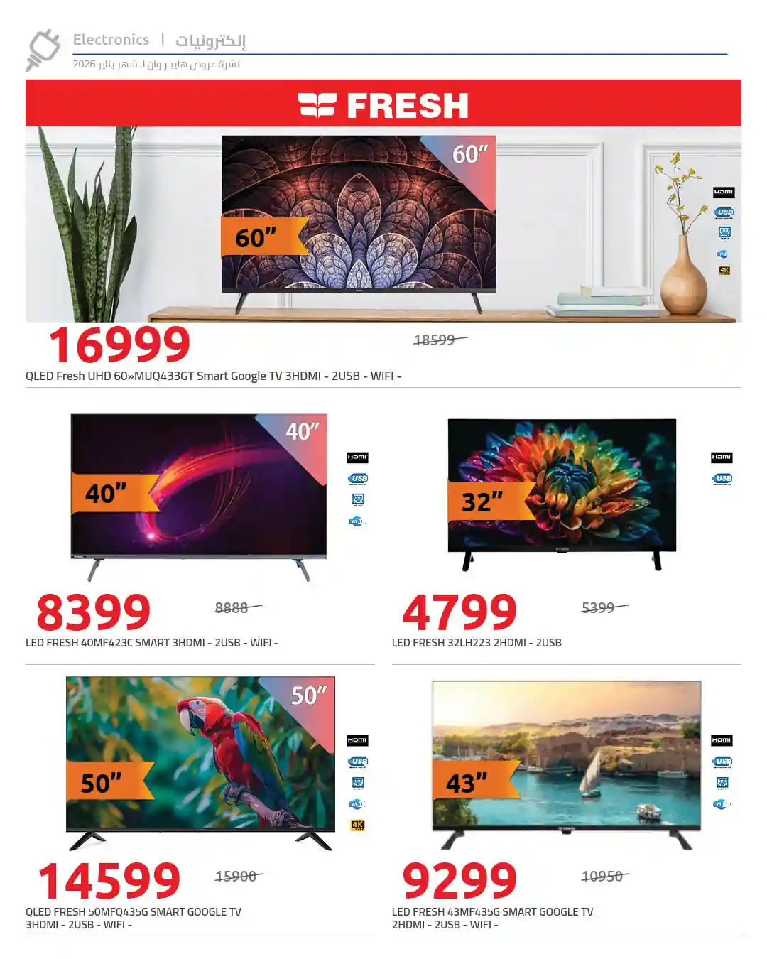 عروض هايبر وان اليوم 4 يناير 2026 اقوى خصومات الشاشات