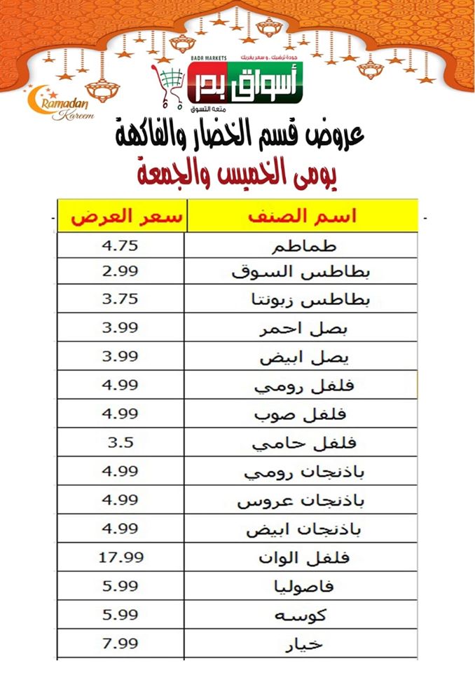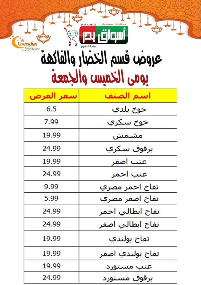 تشمل عروض اسواق بدر اليوم فى عروض مصر على عروض