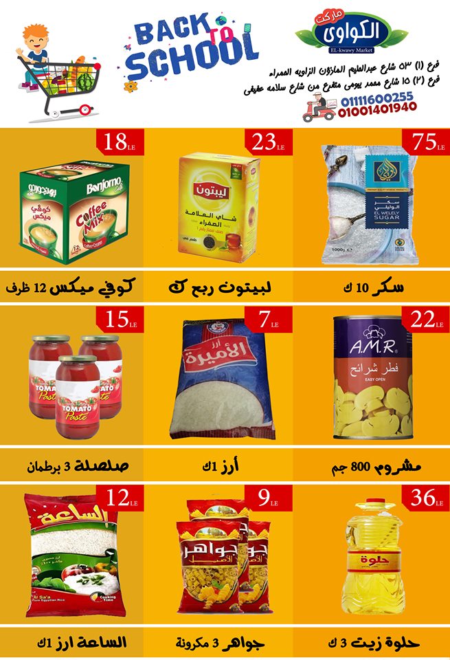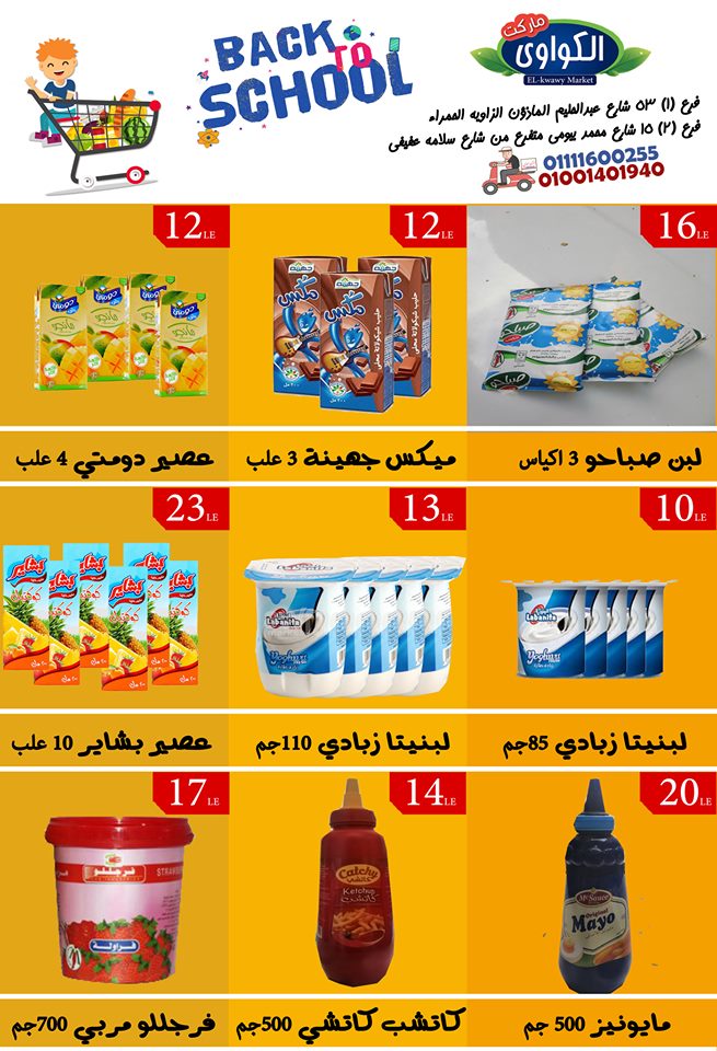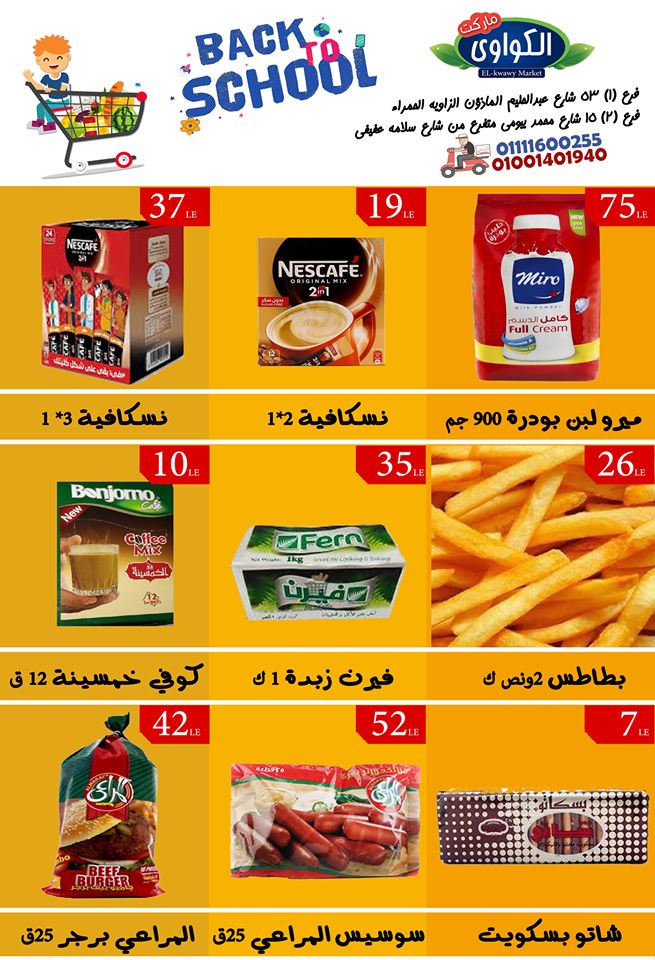 عروض الكواوى ماركت الزاوية الحمراء من 16 سبتمبر 2019 حتى نفاذ الكمية راجعين للمدرسة
