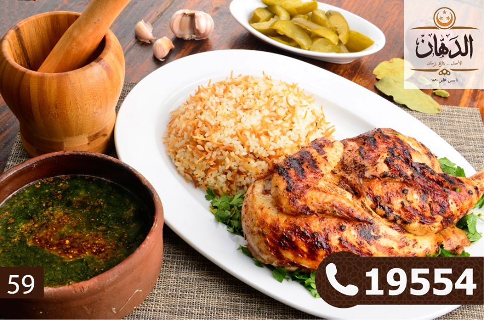 العرض متوفر عن طريق زيارة أي فرع من فروع الدهان او الاتصال على 19554 للدليفري او التيك اواى او الصالة