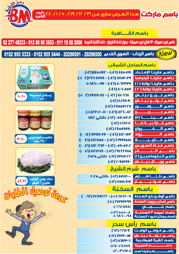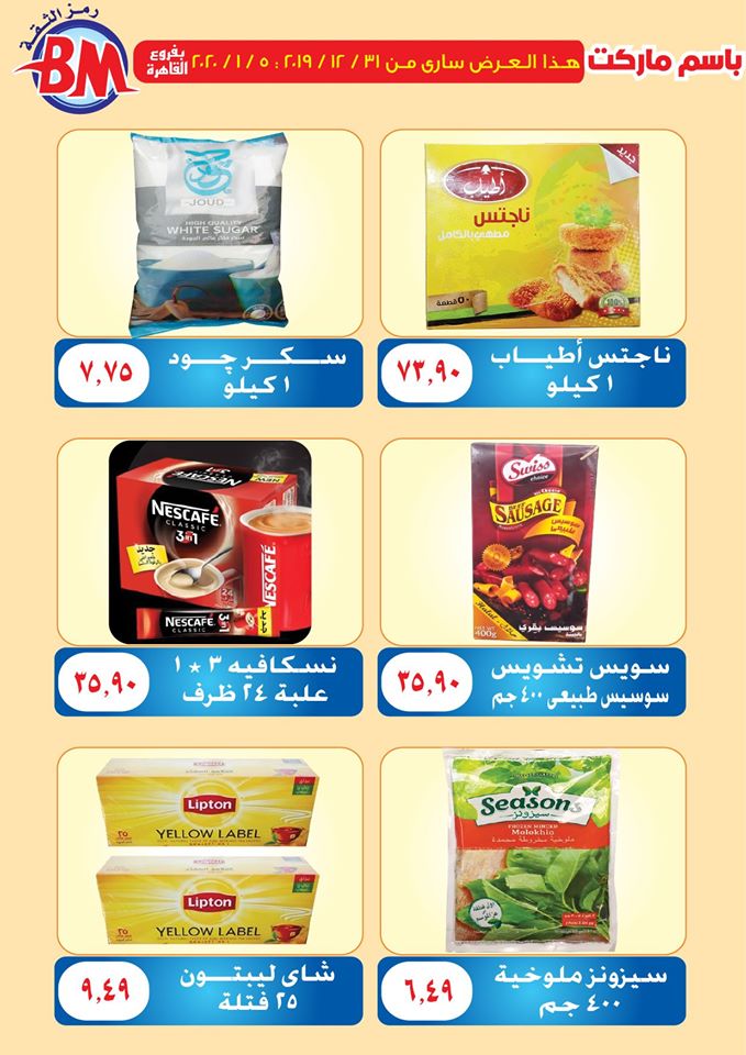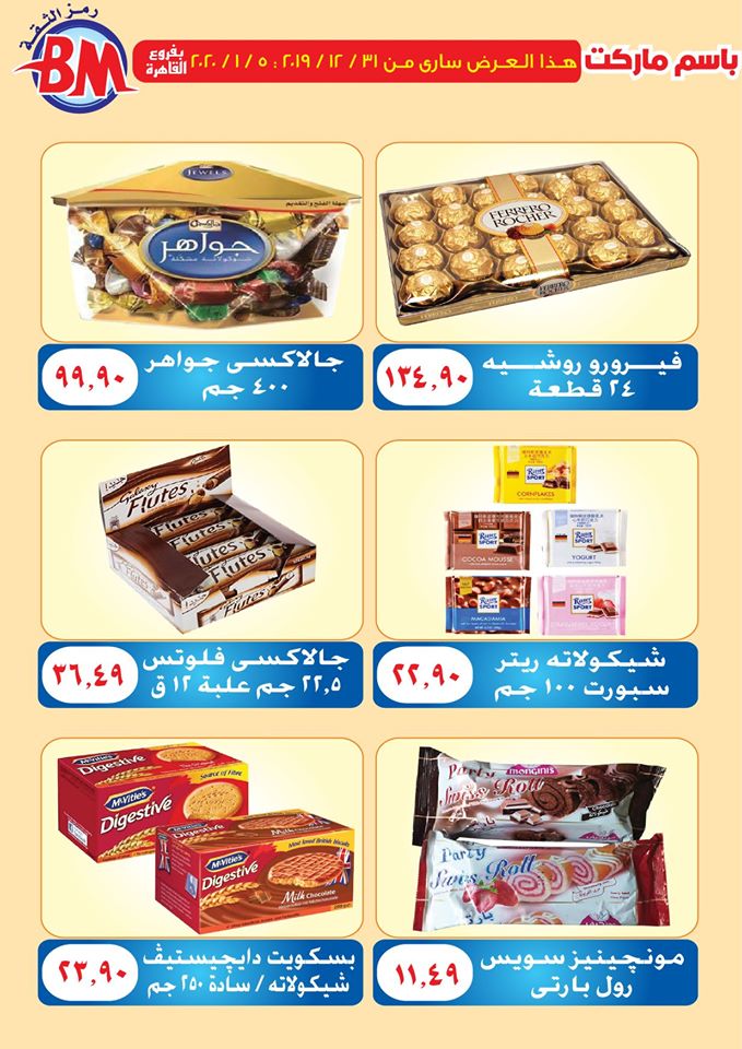 عروض نت تقدم لكم مجلة عروض باسم ماركت الجديدة فى صفحة واحدة Bassem-Market – فرعى مصر الجديدة و مدينة الرحاب – من 31 ديسمبر 2019 حتى 5 يناير 2020 اوحتى نفاذ الكمية.